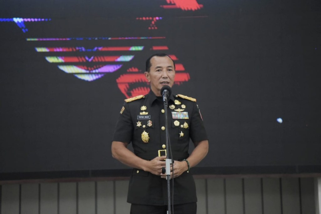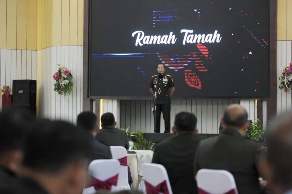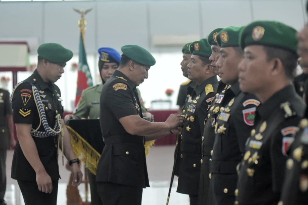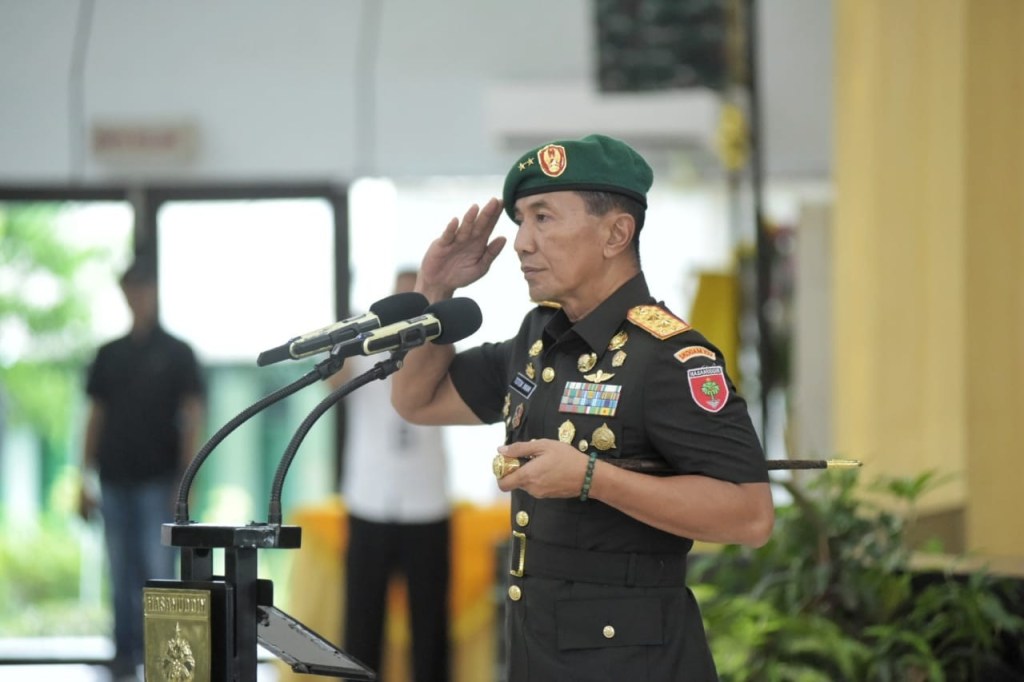 News Lintas Sulawesi/Makassar : Pangdam XIV/Hasanuddin Mayjen TNI Dr. Totok Imam Santoso, S.I.P., S.Sos., M.Tr. (Han)., memimpin Serah Terima Jabatan (Sertijab) sejumlah Pejabat Utama (PJU) Kodam, bertempat di Balai Pertemuan Hasanuddin (BPH) Makodam, Kota Makassar. Senin, (18/12/2023).