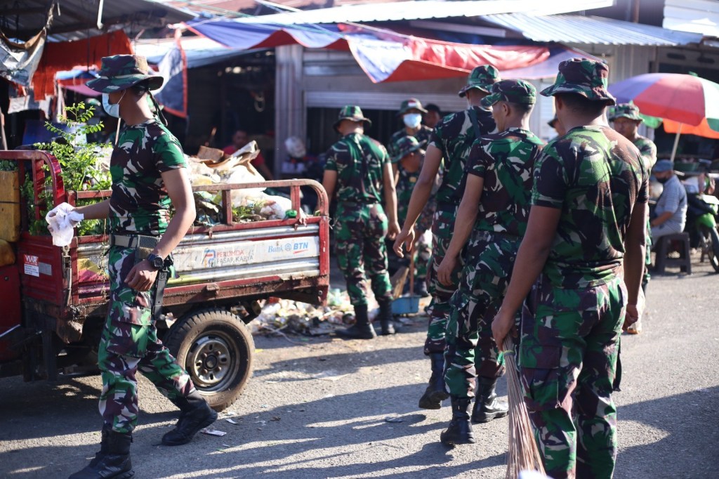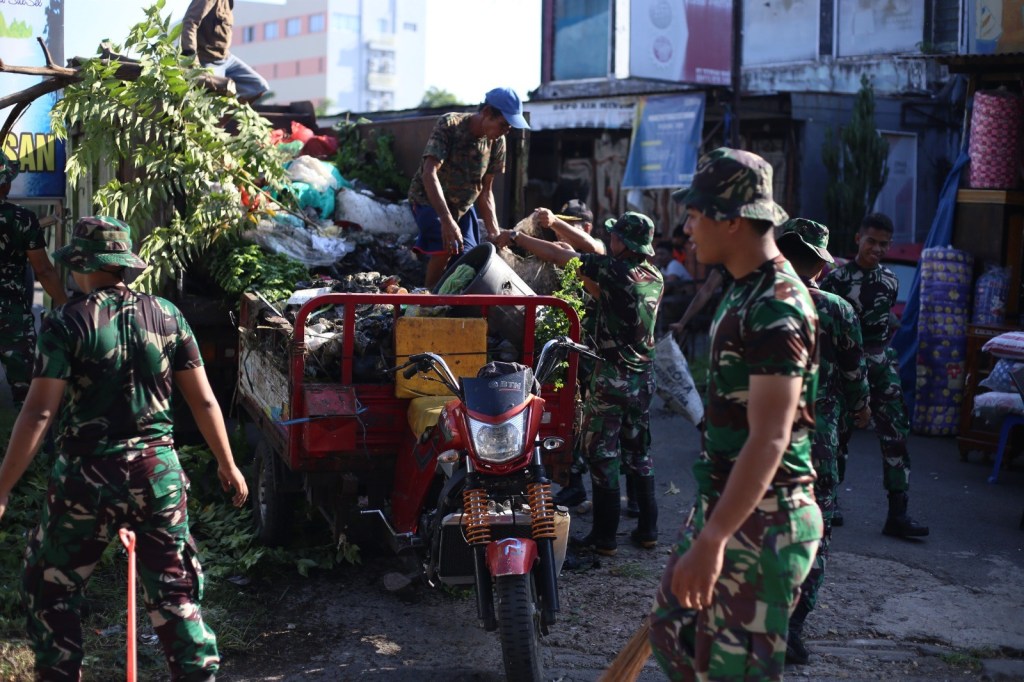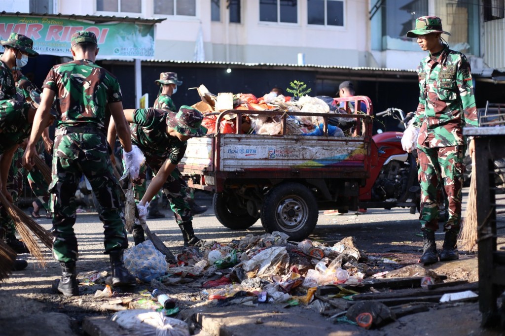 News Lintas Sulawesi/Makassar : Dalam rangka mewujudkan kebersihan dan kenyamanan bagi masyarakat, satuan Ajendam XIV/Hasanuddin menggelar Karya Bakti pembersihan di Pasar Niaga Daya, Jl. Kapasa Raya, Kota Makassar. Jumat, (22/12/2023).