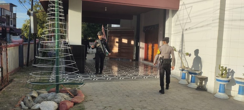 News Lintas Sulawesi/Poso, Sulteng : Dalam rangka memastikan keamanan dan kenyamanan jemaat yang akan melaksanakan ibadah malam Natal di Poso Kota, tim Gegana Jibom Poso Satuan Brimobda Sulteng melakukan sterilisasi di beberapa gereja. Langkah ini dilakukan sebagai upaya pencegahan agar para jemaat dapat beribadah tanpa gangguan. Minggu(24/12/2023).