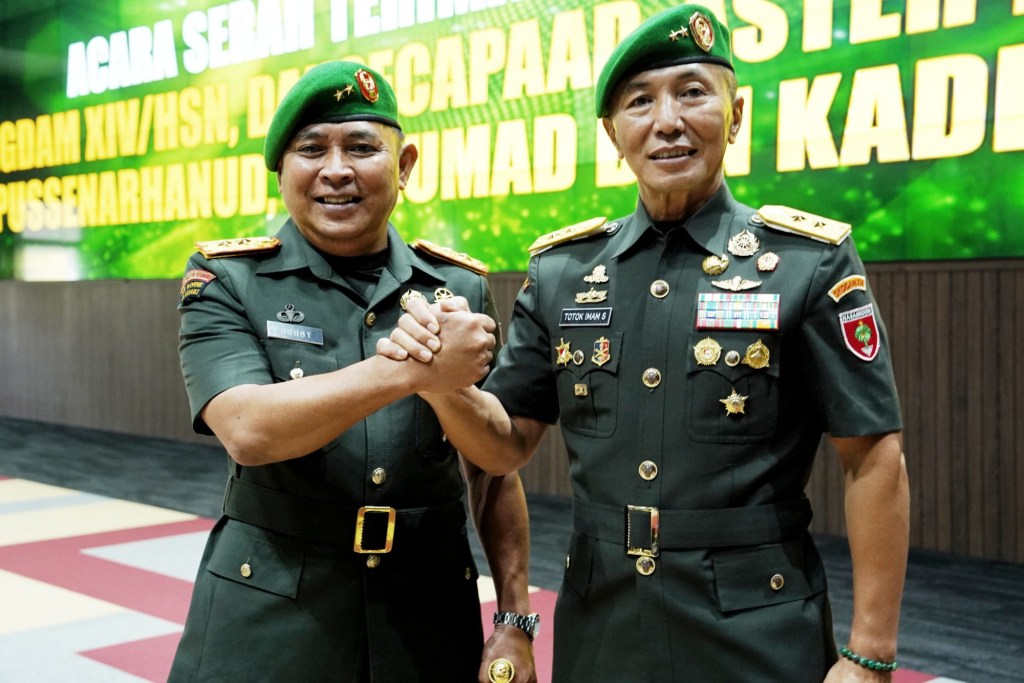 News Lintas Sulawesi/Jakarta : Mayjen TNI Bobby Rinal Makmun, S.I.P., resmi menjabat sebagai Pangdam XIV/Hasanuddin setelah melaksanakan Serah Terima Jabatan (Sertijab) dengan Mayjen TNI Dr. Totok Imam Santoso, S.I.P., S.Sos., M.Tr (Han)., bertempat di Gedung A.H. Nasution Markas Besar TNI Angkatan Darat (Mabesad), Jakarta Pusat. Jumat, (29/12/2023).