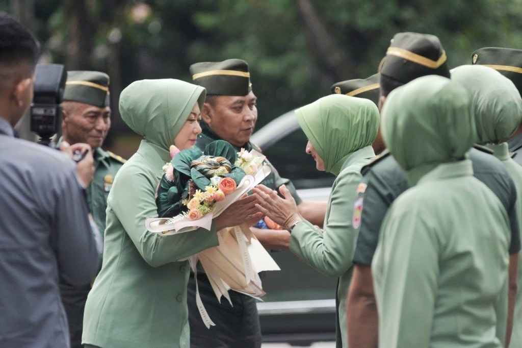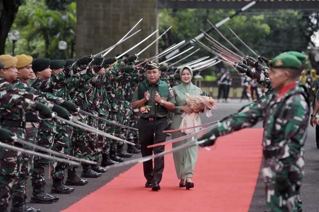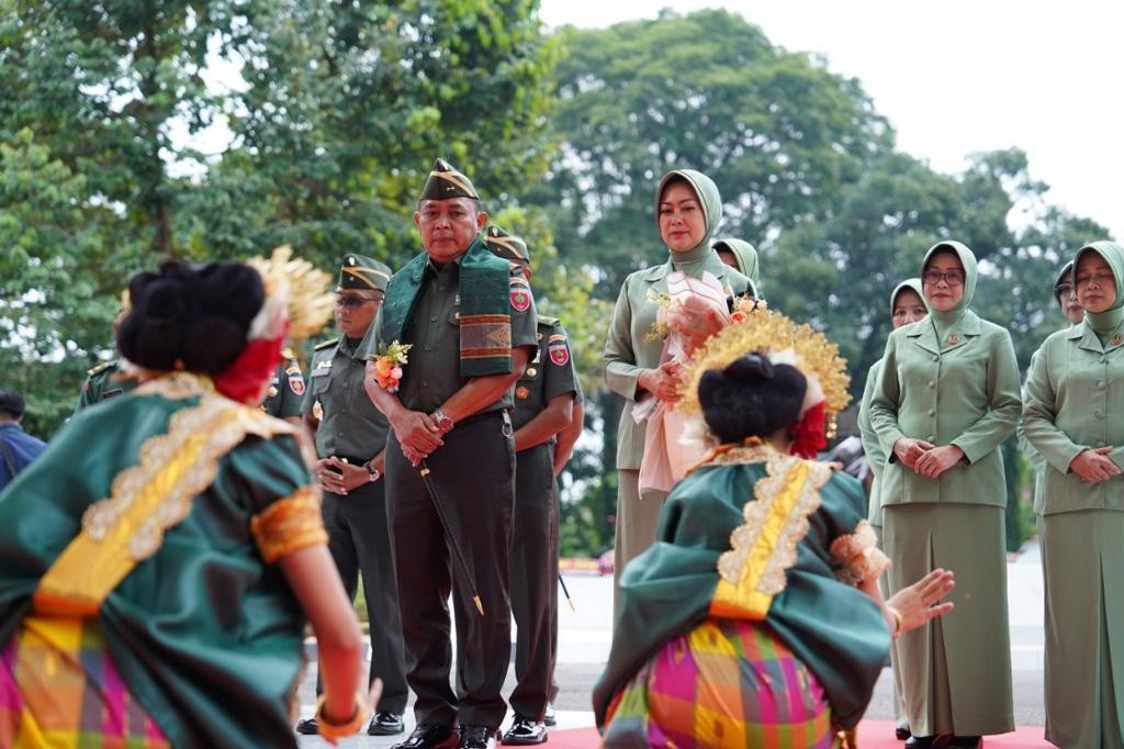 Usai tradisi penerimaan, dilanjutkan penyerahan risalah Kodam XIV/Hasanuddin serta pelepasan dan pengukuhan Ny. Mia Bobby Rinal Makmun sebagai Ibu Raksakarini Sri Sena dilanjutkan Apel Bersama dengan seluruh prajurit dari satuan jajaran Kodam XIV/Hasanuddin se-Kota Makassar.