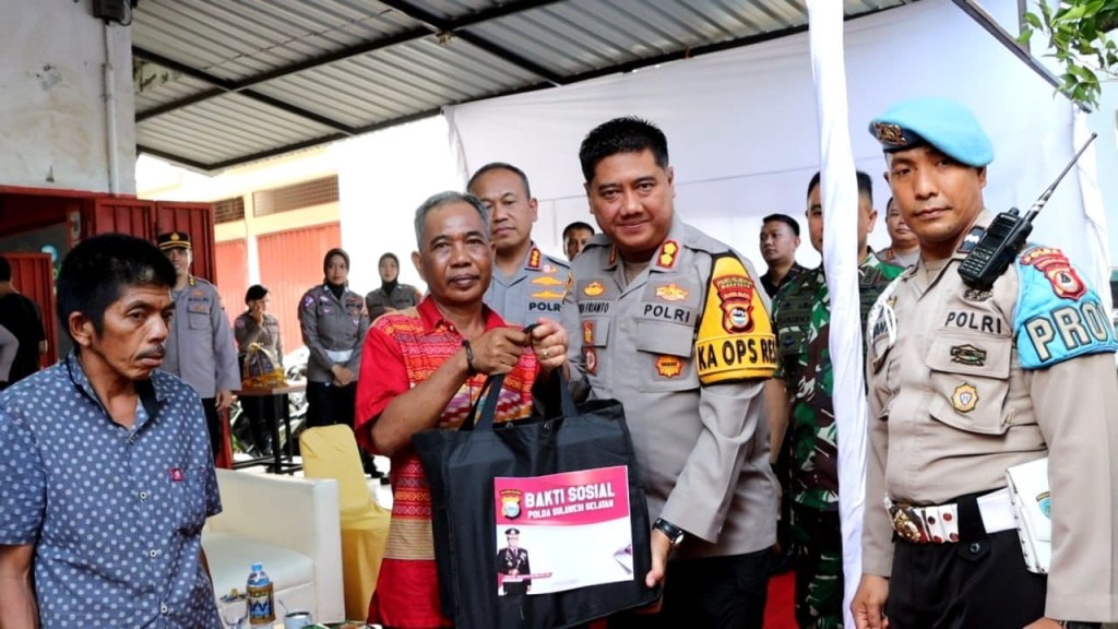 News Lintas Sulawesi/HUMDER ; Kapolres Pelabuhan Makassar AKBP Yudi Frianto menyalurkan bantuan sembako kepada masyarakat . Bantuan ini dalam rangka Jumat Berkah yang digelar Kapolda Sulsel Irjen Polisi Andi Rian R Djajadi.