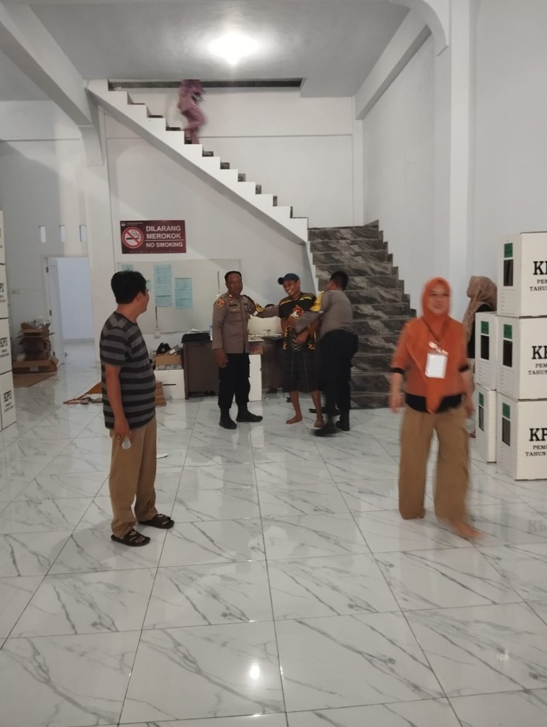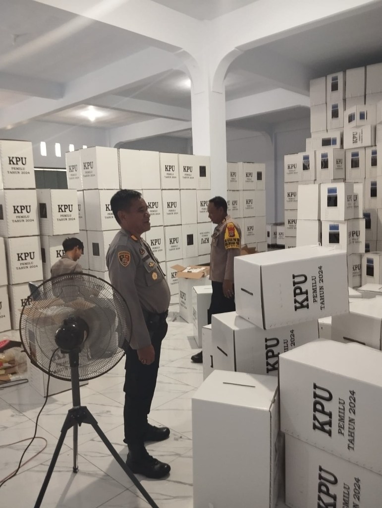 Pelibatan Personel Sat Samapta untuk melakukan pengamanan perakitan kotak suara Pemilu 2024 di Gudang Logistik Pemilu 2024 di Jalan Sawerigading kel. Lamaddukelleng Kec.Tempe Kab.Wajo.