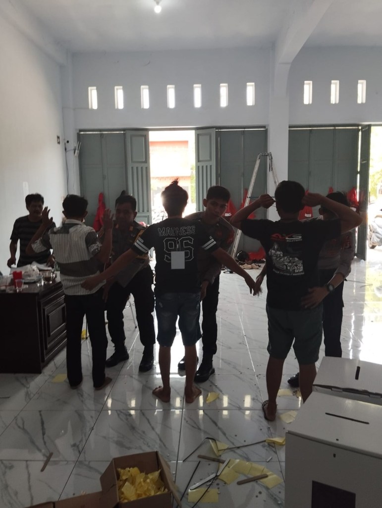 Kasat Samapta Polres Wajo AKP Maering didampingi oleh IPDA Alpius dan BRIPDA Muh. Ajmal juga melakukan pemeriksaan badan terhadap orang yang akan melaksanakan pelipatan kotak suara dan mensortir surat suara.