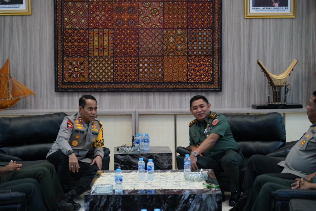 Kehadiran Pangdam XIV/ Hasanuddin ke Mapolda disambut langsung oleh Kapolda Sulsel Irjen Pol Andi Rian R Djajadi, S.I.K., M.H., didampingi sejumlah Pejabat Utama (PJU) Polda Sulsel dengan tujuan ingin mengenal lebih dekat dengan keluarga besar Polda Sulsel.