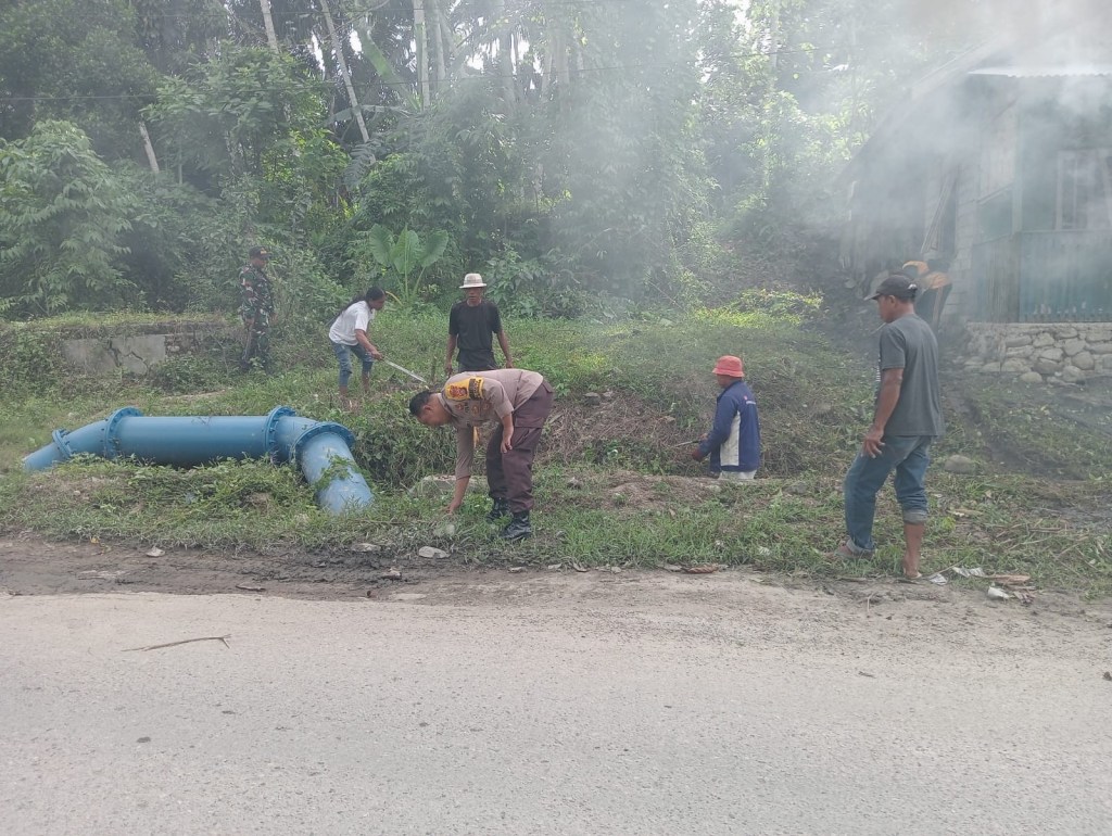 News Lintas Sulawesi/SIGI : Sebagai wujud kebersamaan dan cinta akan kebersihan lingkungan, Ipda Johanis E. Lumentut selaku Kapolsubsektor Gumbasa Polsek Biromaru Polres Sigi memimpin kerja bakti bersama masyarakat di Desa Simoro, Kecamatan Gumbasa, Sigi. Jumat (12/01/2024).