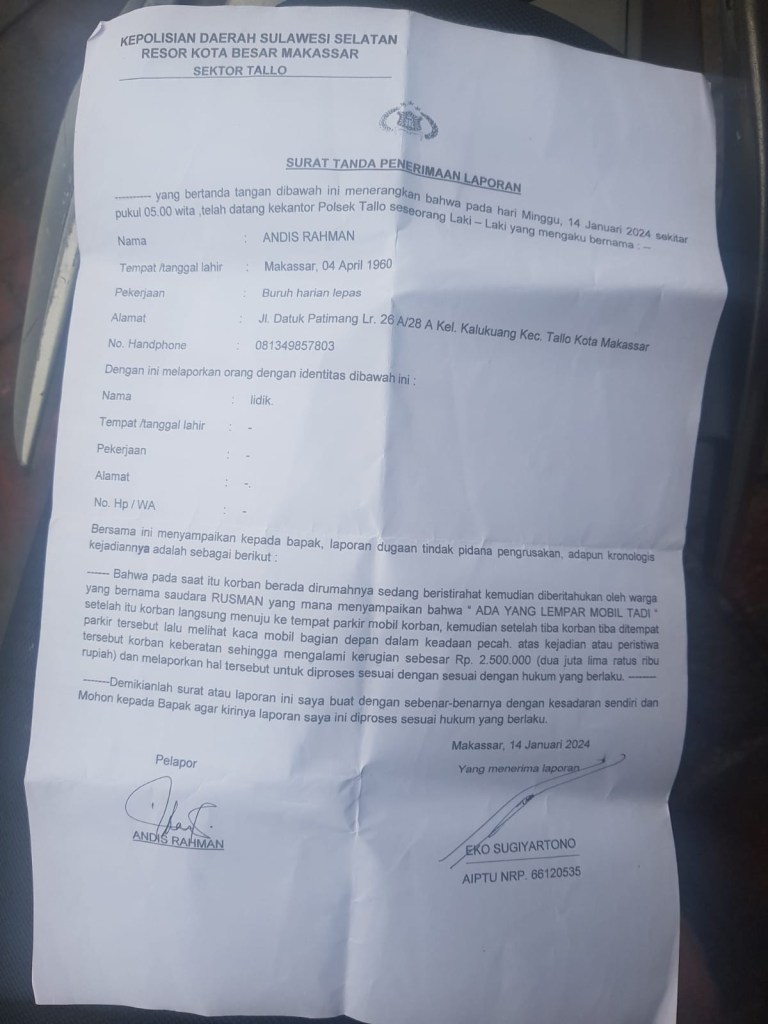 Saat dikonfirmasi, Penyidik Kapolsek Tallo Iptu Manuri menyebut pihak kepolisian tengah mendalami peristiwa tersebut.