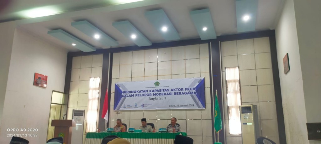 News Lintas Sulawesi/Kemenag Gowa : Kantor Kementerian Agama (Kemenag) Kabupaten Gowa menjadi tuan rumah Workshop Peningkatan Kapasitas Aktor Forum Kerukunan Umat Beragama (FKUB) dalam Pelopor Moderasi Beragama, sebuah kehormatan yang diberikan oleh Kemenag Propinsi Sul Sel.