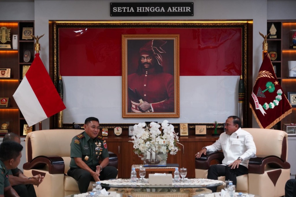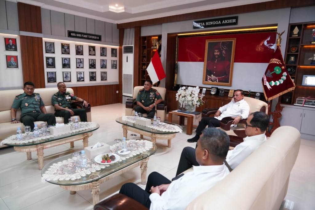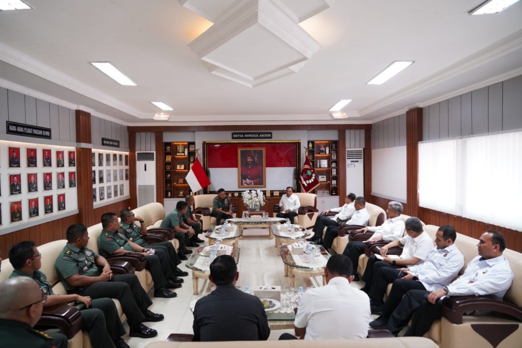 News Lintas Sulawesi/Makassar : Pangdam XIV/Hasanuddin Mayjen TNI Bobby Rinal Makmun, S.I.P., didampingi sejumlah Pejabat Utama (PJU) Kodam menerima audiensi dari Tim Deputi Bidang Koordinasi Politik Dalam Negeri (Poldagri) Kemenko Polhukam RI, bertempat di ruang tamu Pangdam, Makodam, Jl. Urip Sumoharjo, Kota Makassar. Senin, (22/01/2024).