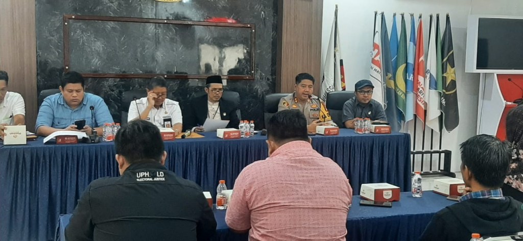 News Lintas Sulawesi/HUMDER ; Kapolres Pelabuhan Makassar AKBP Yudi Frianto hadiri Rapat Koordinasi Persiapan Kampanye Rapat Umum Peserta Pemilihan Umum Tahun 2024, Aula Kantor KPU jalan Perumnas Antang Raya Makassar, Rabu (24/01/2024)
