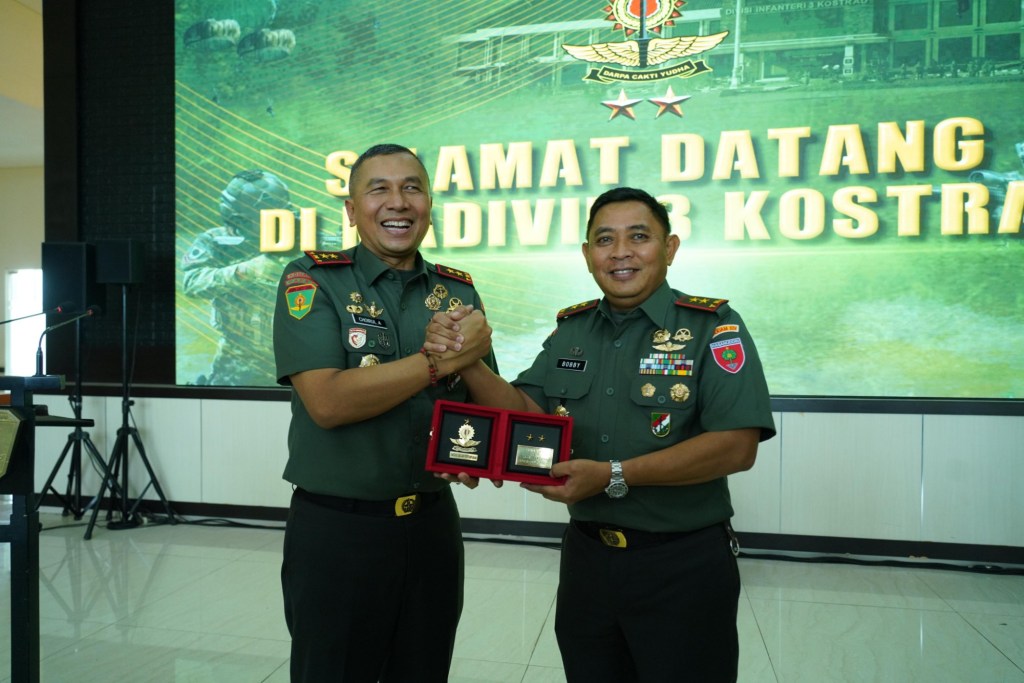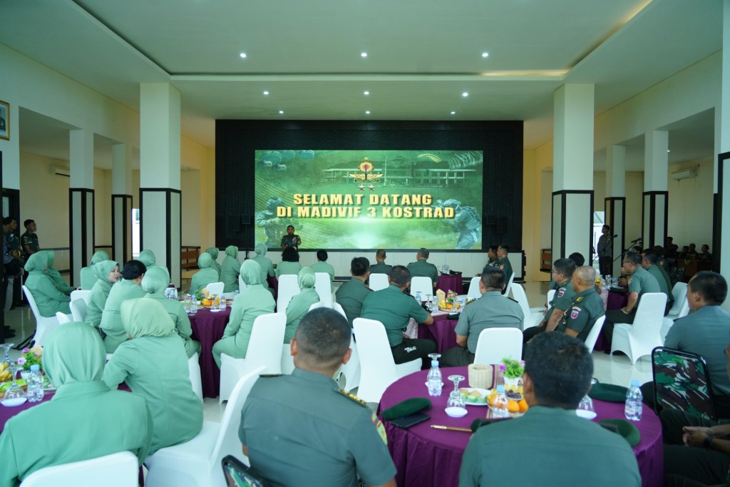 News Lintas Sulawesi/Gowa ; Pangdam XIV/Hasanuddin Mayjen TNI Bobby Rinal Makmun, S.I.P., didampingi Ketua Persit Kartika Chandra Kirana (KCK) PD XIV/Hasanuddin Ny. Mia Bobby Rinal Makmun dan sejumlah Pejabat Utama (PJU) Kodam melaksanakan kunjungan ke Divisi Infanteri (Divif) 3/Kostrad, bertempat di Jl. Poros Malino, Kec. Bontomarannu Kab. Gowa. Rabu, (24/01/2024).