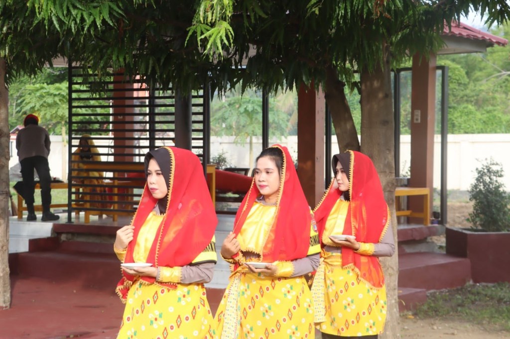 Setelah kemudian lalu tamu dari Polda Sulteng diberikan kalungan bunga dan bersama dengan Jajaran Kehormatan pada Jarmat (24/1-2024), Kapolda dan Ketua Bhayangkari daerah Sulteng disambut dengan tarian kreasi tradisonal kahas daerah Palu, Sigi, Donggala “Pokambu” yang juga merupakan tarian tradisional daerah (Palu) Kaili khusus untuk menyambut para tamu.