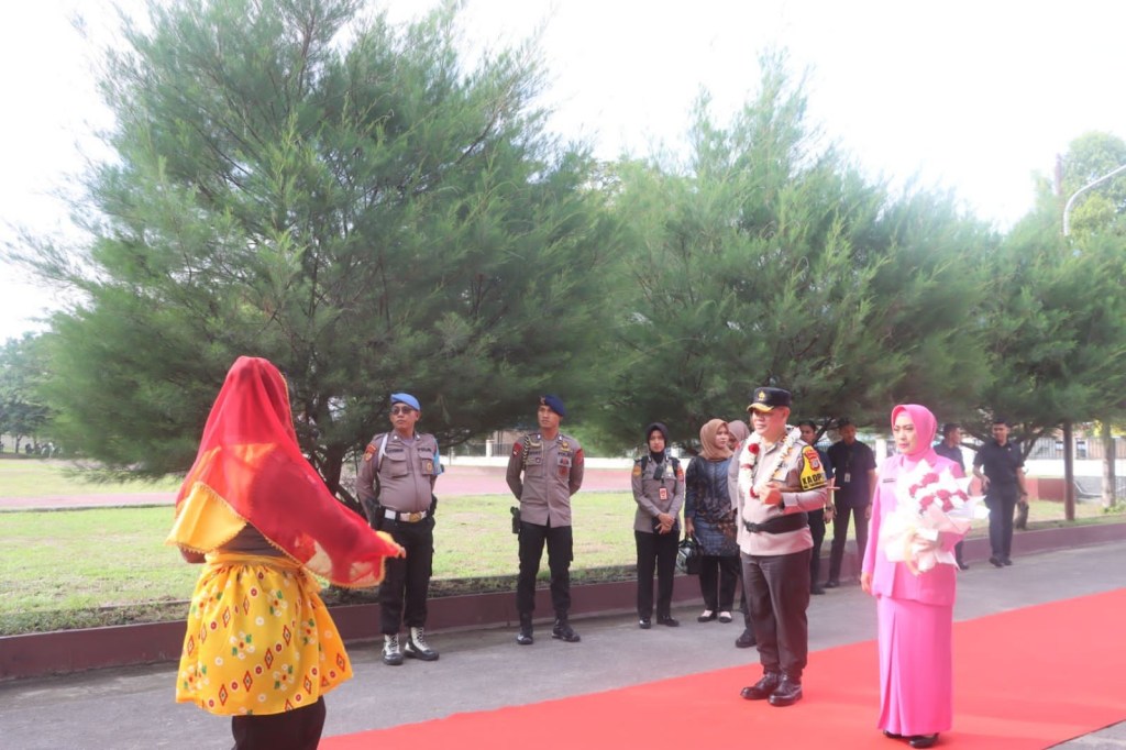 News Lintas Sulawesi/Sigi, Sulteng : Tiga penari Polisi Wanita (Polwan) Polres Sigi gemulai dalam gerakan tari Pokambu menyambut kedatangan Kapolda Sulteng Irjen Pol. Dr. Agus Nugroho, S.I.K., S.H., M. didampingi Ny. Fera Agus Nugroho dalam pelaksanaan kunjungan kerja (Kunker) ke Polres Sigi, Kamis (25/01/2024) pagi.