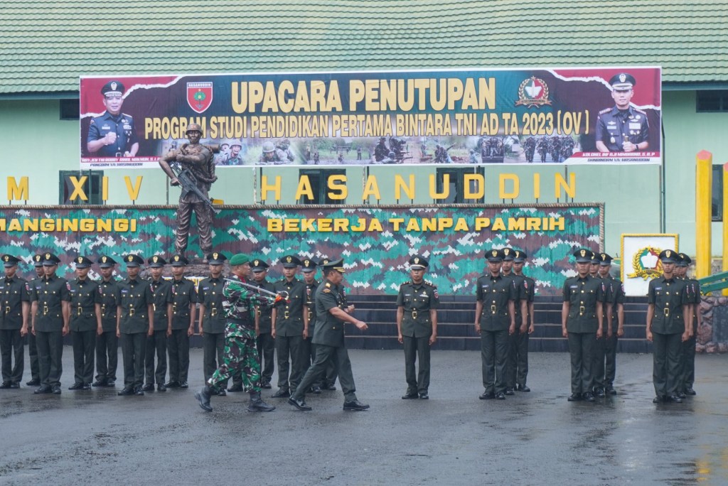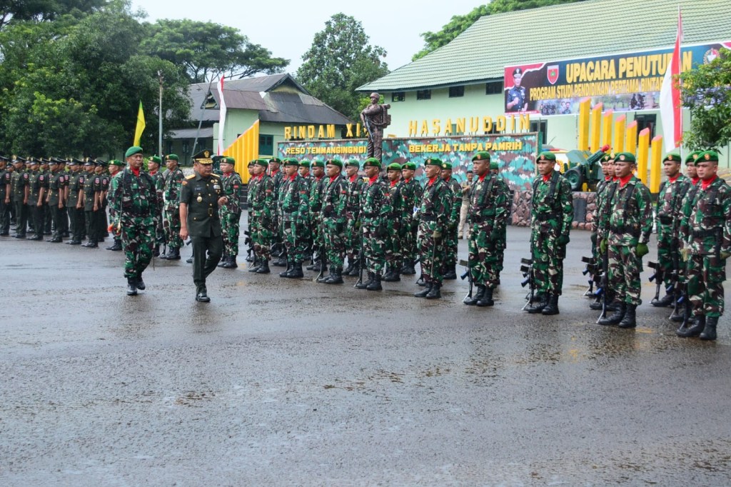 News Lintas Sulawesi/Pakatto : Pangdam XIV/Hasanuddin Mayjen TNI Bobby Rinal Makmun, S.I.P., memimpin Upacara Penutupan Program Studi Pendidikan Pertama Bintara TNI AD TA 2023, bertempat di lapangan Sapta Marga Rindam XIV/Hasanuddin Jl. Poros Malino Pakatto Kab. Gowa. Senin, (29/01/2024).