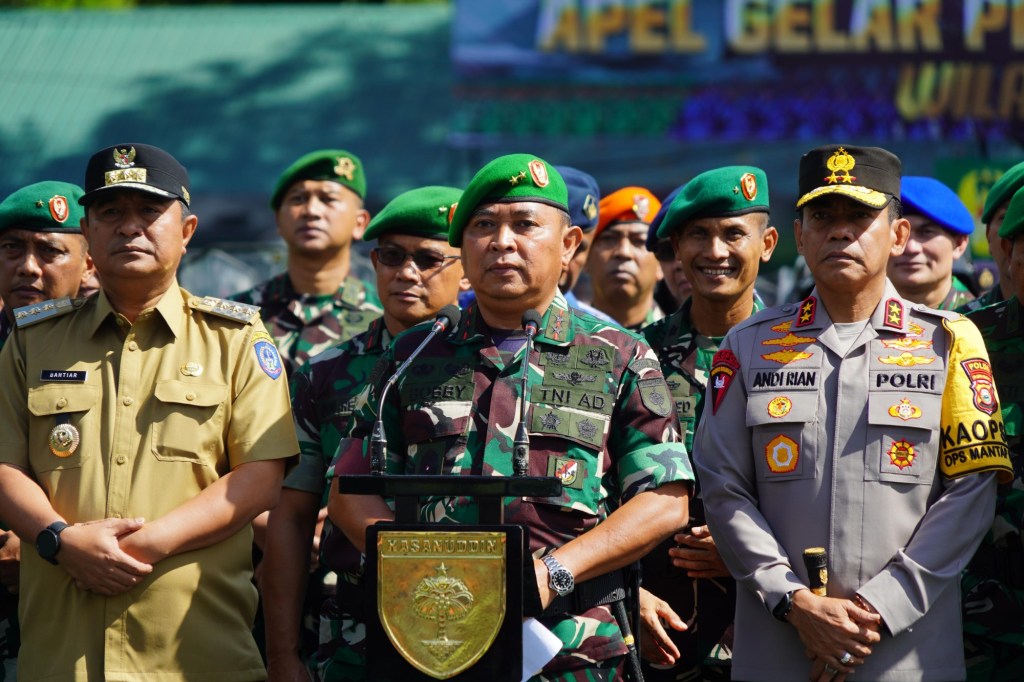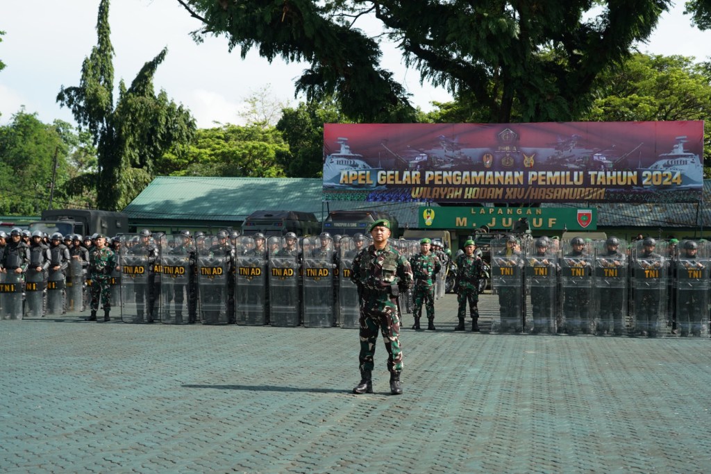 Hadir dalam Apel Gelar Pengamanan Pemilu di Makodam ini yakni Pj Gubernur Sulsel, Kapolda Sulsel, Kajati Sulsel, Ketua KPU Sulsel, Ketua Bawaslu Sulsel, Unsur Pejabat TNI-Polri dan diikuti ribuan Prajurit TNI AD, TNI AL dan TNI AU. Apel ini pun dilaksanakan serentak di seluruh jajaran TNI, yang dipusatkan di lapangan Taxy Way Echo Halim Perdanakusuma, Jakarta Timur, dipimpin langsung oleh Panglima TNI Jenderal TNI Agus Subiyanto, S.E., M.Si, secara virtual.