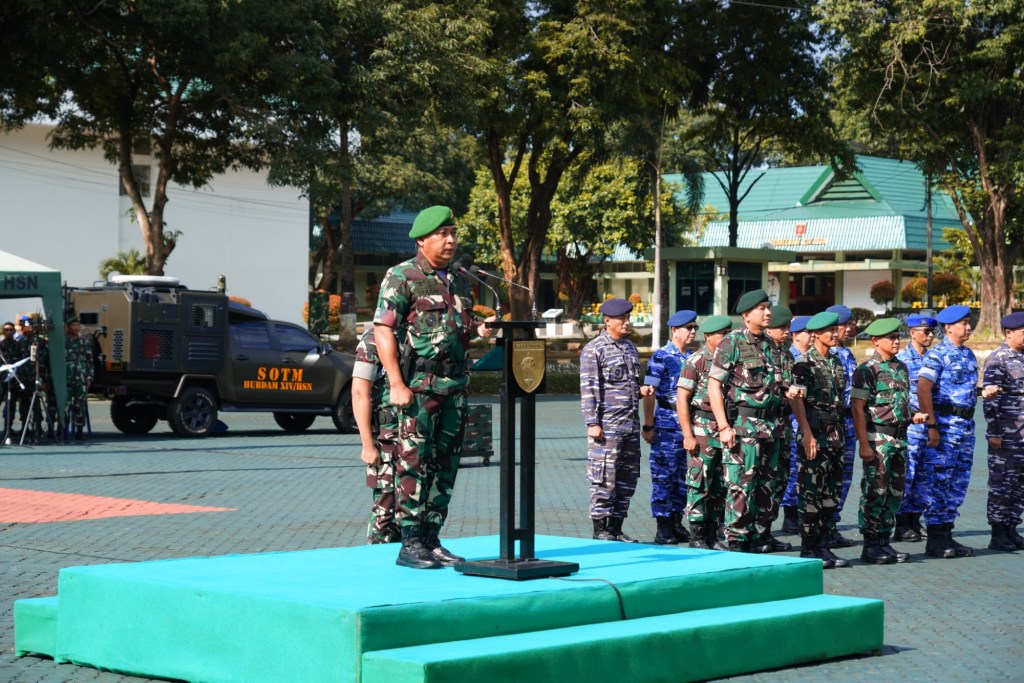 News Lintas Sulawesi/Makassar : Pangdam XIV/Hasanuddin Mayjen TNI Bobby Rinal Makmun, S.I.P., memimpin Apel Gelar Pengamanan Pemilu Tahun 2024 secara serentak di Wilayah Kodam XIV/Hasanuddin, bertempat di lapangan M. Yusuf Makodam, Jl. Urip Sumoharjo, Kota Makassar. Kamis, (1/02/2024).
