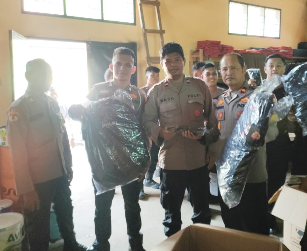 Pembagian Kaporlap ini kami bagikan Tas serba guna, senter penerangan,tongkat button stick,borgol, Kaos Polri dan Kaos Kaki ,”tambahnya.