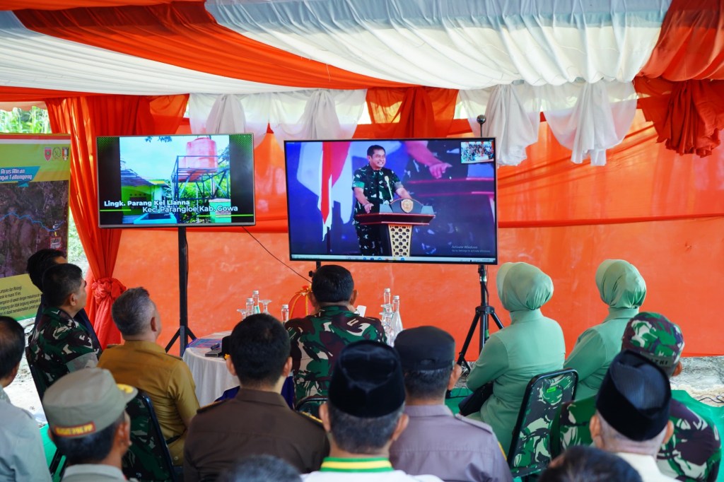 Pangdam yang didampingi Ketua Persit Kartika Chandra Kirana (KCK) PD XIV/Hasanuddin Ny. Mia Bobby Rinal Makmun, Danrem 141/Tp Brigjen TNI Sugeng Hartono, S.E., M.M., sejumlah pejabat utama Kodam dan Korem 141/Tp serta para Dandim se jajaran Korem 141/Tp mengikuti vidcon di salah satu lokasi Manunggal Air berupa pencanangan bendungan dan pengairan di wilayah Kodam XIV/Hasanuddin tepatnya di Desa Talungeng, Kecamatan Barebbo, Kabupaten Bone.