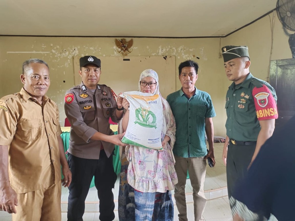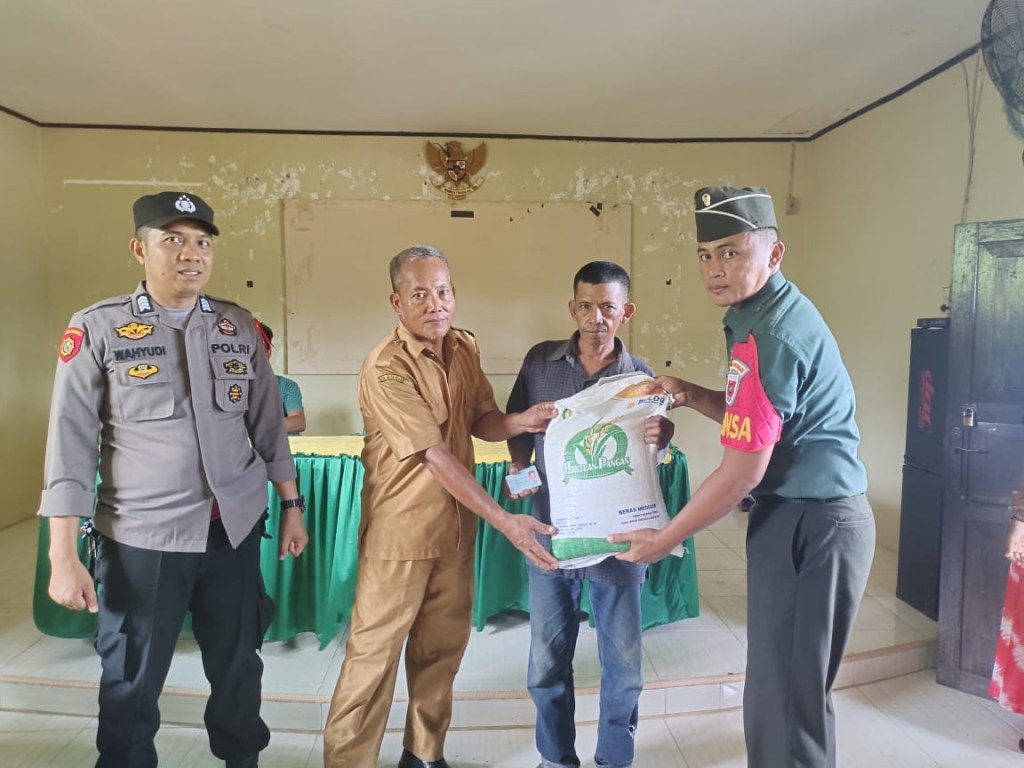News Lintas Sulawesi/Wajo; Ps Kanit Binmas Polsek Sabbangparu Polres Wajo Bripka Wahyuddin AM,S.Sos melaksanakan Kegiatan Pendampingan Penyaluran Bantuan Pangan Beras Bulog 10 Kg Cadangan Pangan Pemerintah ( CPP ) Kab Wajo.