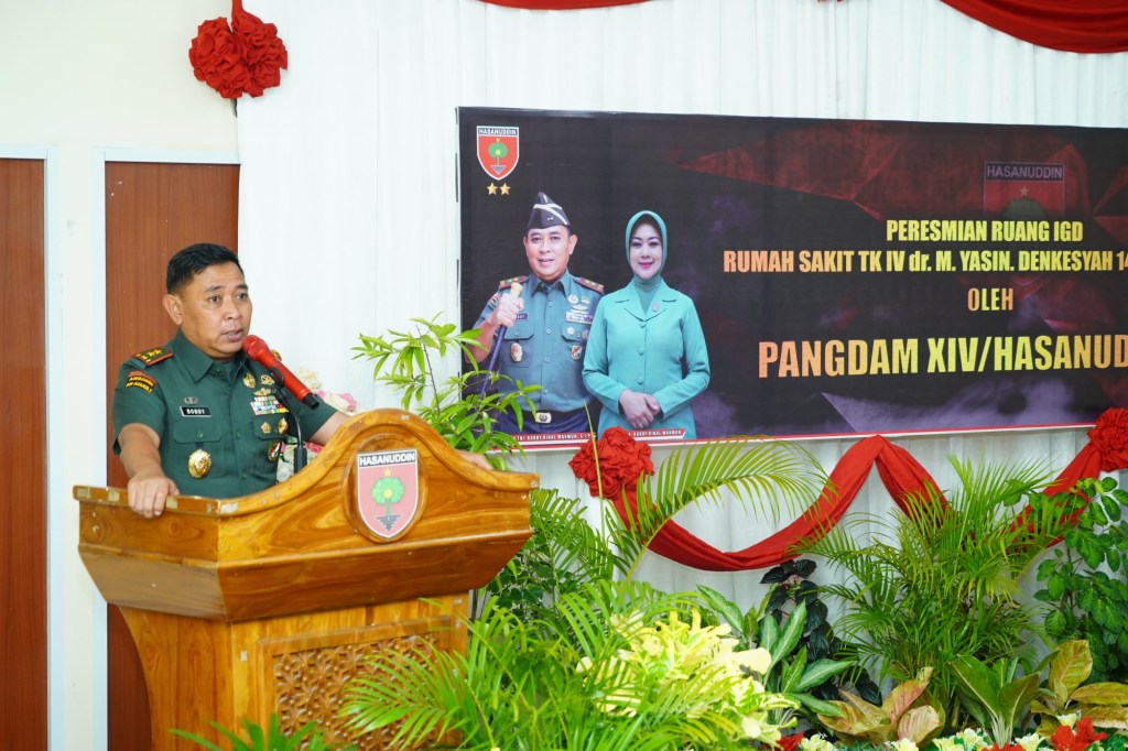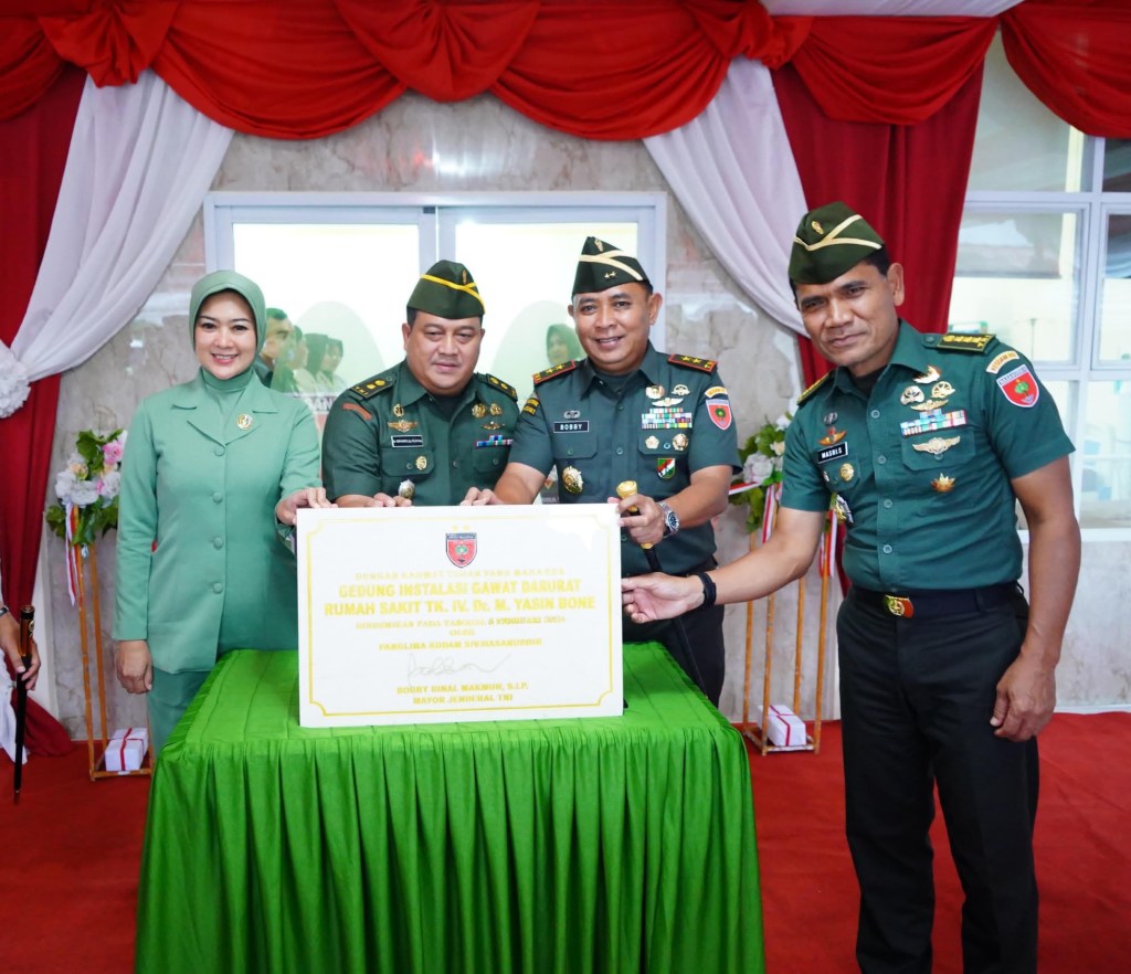 News Lintas Sulawesi/Bone; Rangkaian kunjungan kerja (Kunker) di wilayah Korem 141/Tp, Pangdam XIV/Hasanuddin Mayjen TNI Bobby Rinal Makmun, S.I.P., meresmikan Ruang Instalasi Gawat Darurat (IGD) Rumah Sakit (RS) Tk. IV 14.04.01 dr. M. Yasin Denkesyah 14.04.01 Bone Kesdam XIV/Hasanuddin, bertempat di Jl. Jend. Sudirman, Kabupaten Bone. Senin, (5/02/2024).