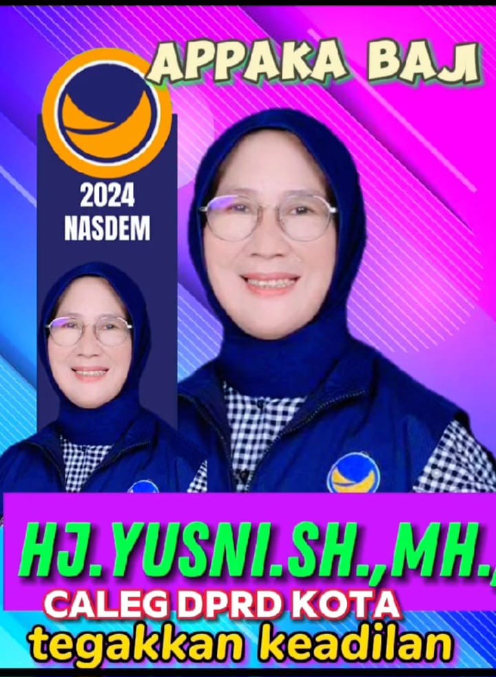 “Appakabaji” dan “Tegakkan Keadilan” menjadi perhatian bagi. ” AKBP.(Purn).Hj.Yusni Asmadi.SH.MH. Calon Legeslatif DPRD Kota Makassar, nomor urut 4 dari Partai Politik Nasdem. Pernyataan politik tentunya suatu penawaran dan ajakan disampaikan kepada Masyarakat untuk di realisasikan dijadikan dasar penilaian sebagai pertimbangan dalam menggunakan hak suaranya saat menentukan pilihannya agar tidak salah pilih.