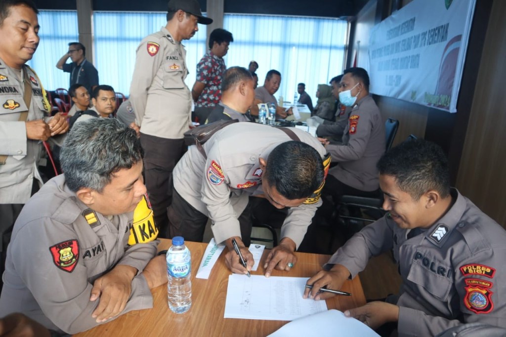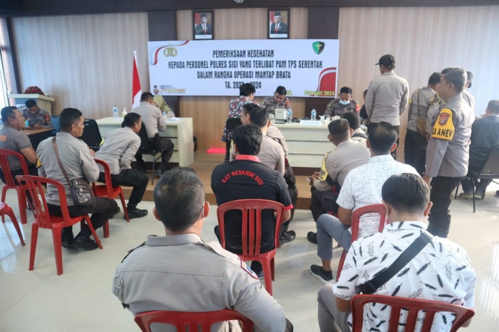 News Lintas Sulawesi/Sigi; Menjelang Pengamanan TPS pada tahapan Pemungutan Suara Pemilu 2024 tanggal 14 Februari 2024, Polres Sigi melaksanakan pemeriksaan kesehatan (Rikkes) terhadap personel Polres Sigi yang terlibat pengamanan Pemungutan Suara Pemilu 2024.