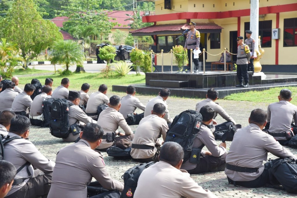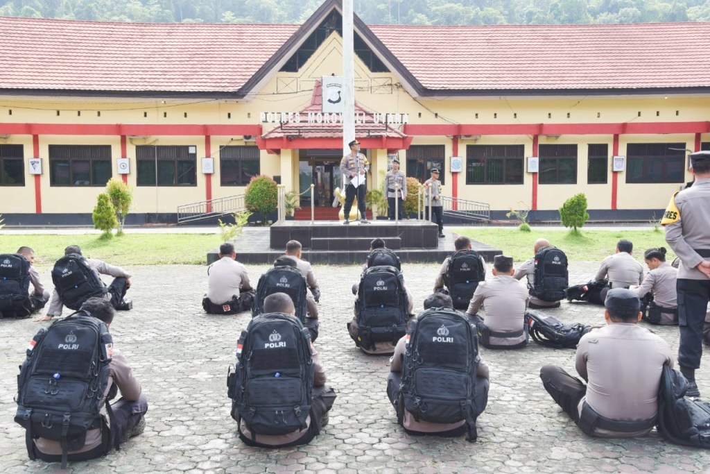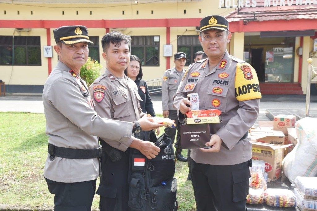 Usai memberikan arahannya, Kapolres mengecek kesiapan Perlengkapan Perorangan Lapangan (Kaporlap) yang telah dibagikan sebelumnya selain itu Kapolres juga memberikan bekal logistik berupa makanan ringan, susu, vitamin, serta Makanan Tambahan Polri (MTP).