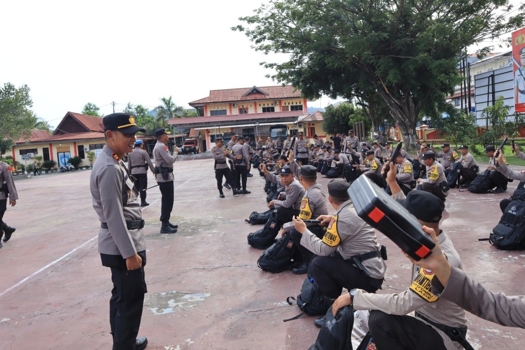 Poso – Dalam rangka memastikan kelancaran dan keamanan pelaksanaan Pemilihan Umum (Pemilu) 2024, Polres Poso menggelar apel pengecekan perlengkapan personel pengamanan Tempat Pemungutan Suara (TPS). Apel yang dipimpin langsung oleh Kapolres Poso, AKBP Arthur Sameaputty, S.I.K, ini dilaksanakan di lapangan apel Polres Poso. Kamis (08/02/2024).
