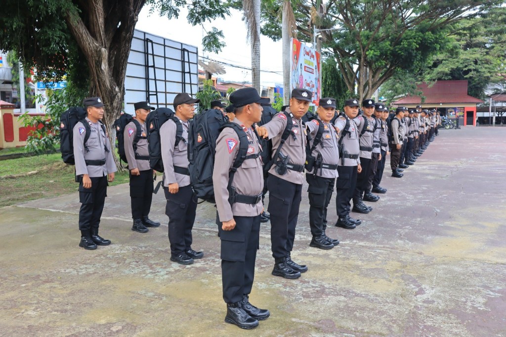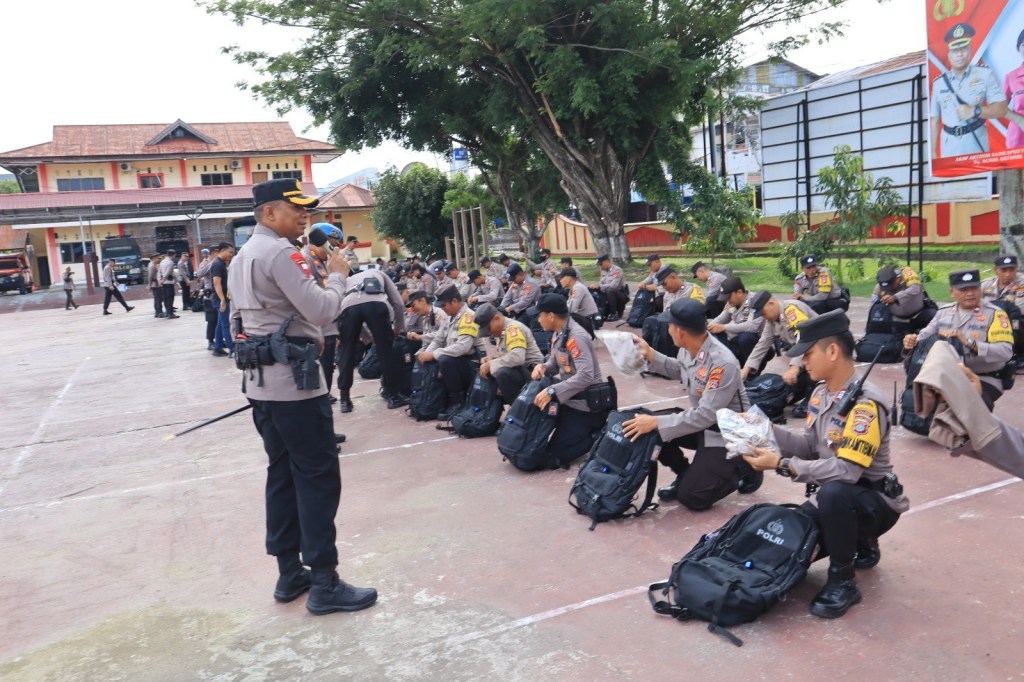 Pada saat pengecekan, Kapolres Poso memastikan setiap personel dilengkapi dengan perlengkapan seperti rangsel punggung, peralatan pribadi anggota, bekal kesehatan obat-obatan, buku saku, roling bed, senter, HT, tongkat, jas hujan, borgol, dan peralatan lainnya yang diperlukan dalam menjalankan tugas pengamanan.