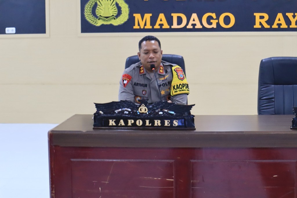 News Lintas Sulawesi/Poso; Kepala Kepolisian Resor Poso AKBP. Arthur Sameaputty, S.I.K., selaku Kepala Operasi Mantap Brata Tinombala 2024, memberikan arahan kepada seluruh Kapolsek (Kapamwil) di wilayahnya terkait pelaksanaan pengamanan dan pengawalan pergeseran logistik Pemilihan Umum (Pemilu) 2024. Jumat(09/02/2024).