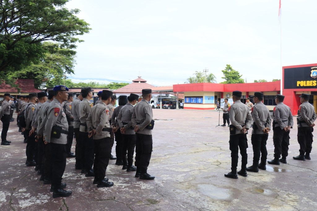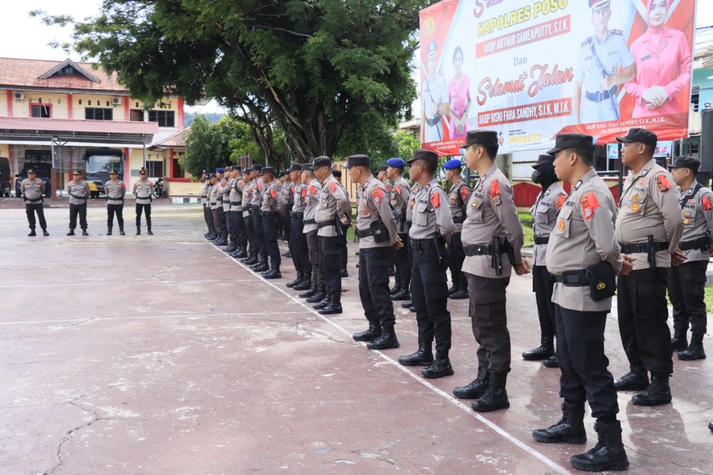 News Lintas Sulawesi/Poso; Kapolres Poso, AKBP Arthur Sameaputty, S.I.K, memimpin langsung Apel Pengecekan dan pergeseran personil Bawah Kendali Operasi (BKO) Polda Sulteng. Apel ini dilaksanakan dalam rangka pengamanan Tempat Pemungutan Suara (TPS) di Kabupaten Poso, Senin (12/02) pagi. Acara tersebut berlangsung di lapangan Mapolres Poso.