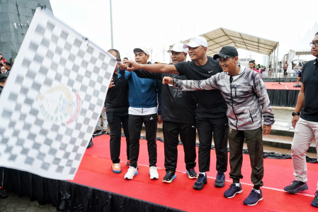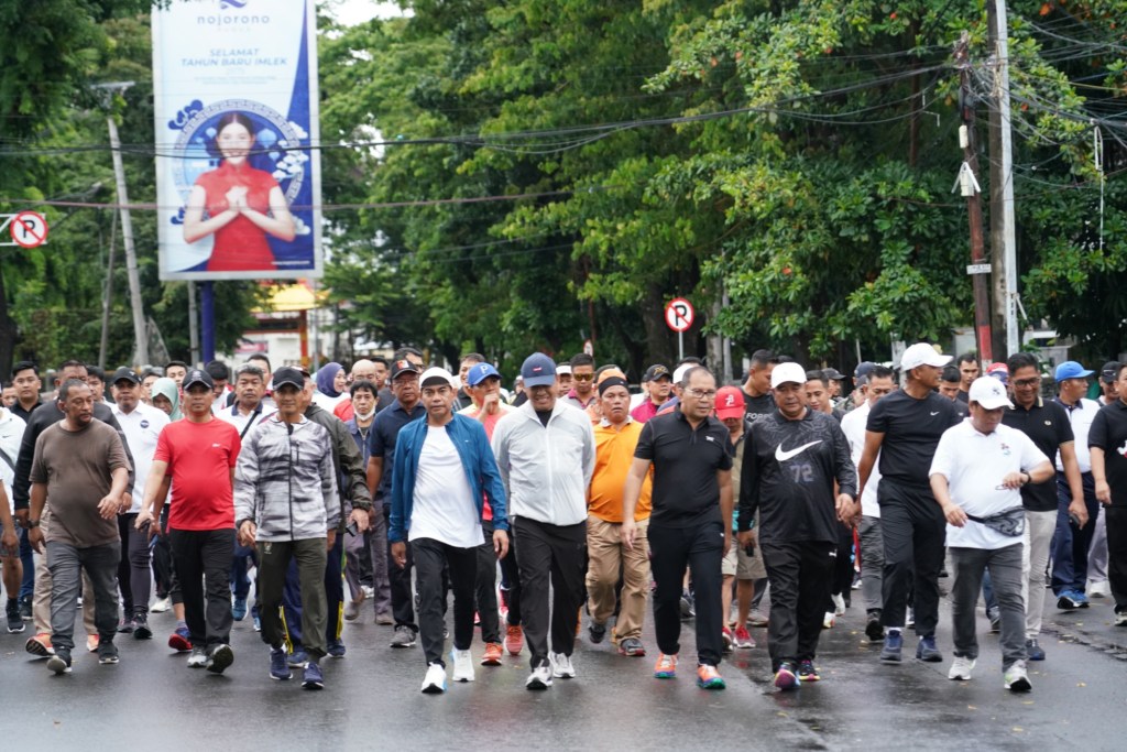News Lintas Sulawesi/Makassar; Kepala Staf Kodam (Kasdam) XIV/Hasanuddin Brigjen TNI M. Syech Ismed, S.E., M.Han., mewakili Pangdam bersama unsur Forkopimda Sulsel menghadiri kegiatan Jalan Sehat, Pemeriksaan Kesehatan Gratis dan Donor Darah sebagai bagian dari Kegiatan Cooling System Pemilu Tahun 2024, bertempat di Anjungan Pantai Losari, Kota Makassar. Minggu, (11/02/2024).