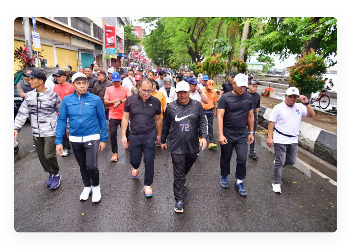 Cuaca hari ini juga sangat mendukung, di tengah suasana udara yang sejuk sehabis hujan, Pj Gubernur Sulsel Bahtiar Baharuddin dan Pj Ketua TP PKK Sulsel Sofha Marwah Bachtiar, bersama Wali Kota Makassar Danny Pomanto serta unsur Forkopimda provinsi dan kota, jalan sehat dengan start di Pantai Losari – Jalan Penghibur – Bundaran Patung Mandiri- Jalan Slamet Riadi- Jalan Pattimura – Jalan Somba Opu – finish Pantai Losari.