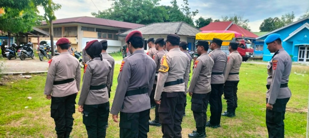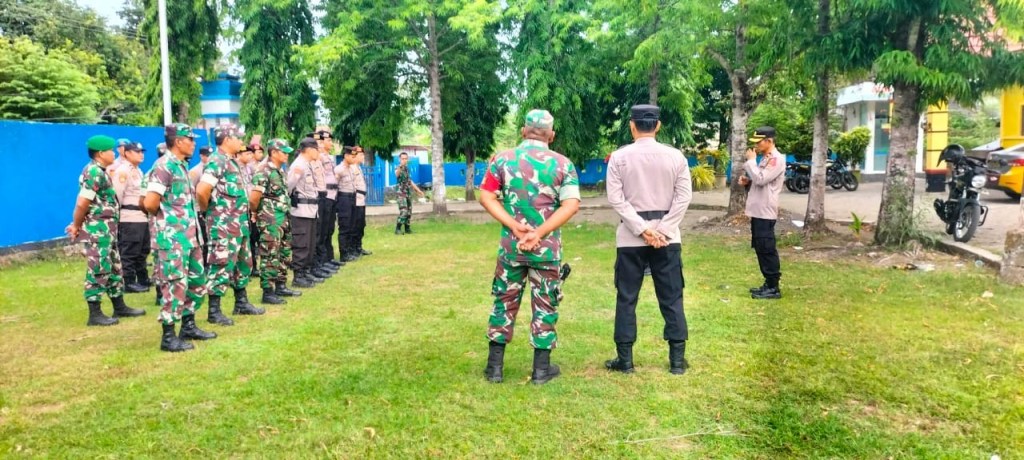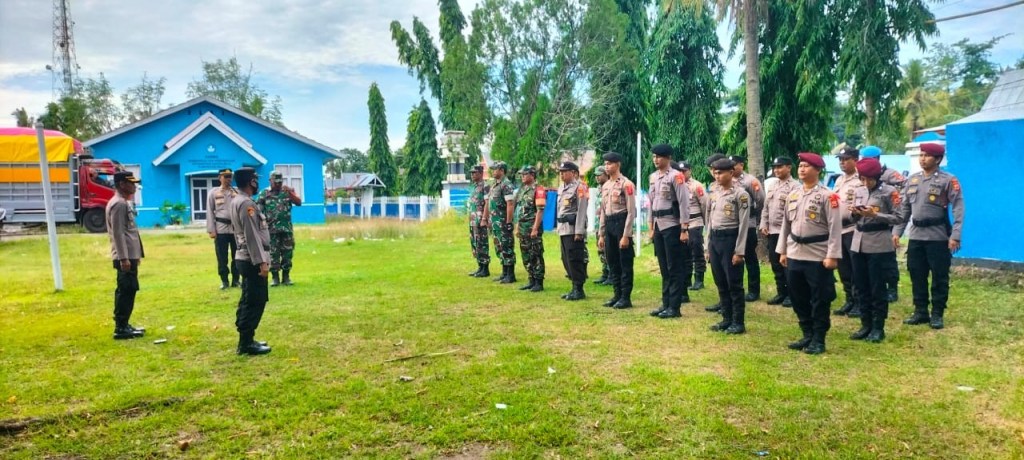 News Lintas Sulawesi/WAJO; Kapolsek Takkalalla Polres Wajo AKP Asrudi, S.Sos bersama Danramil 1420-07 Takkalalla Serma Abdul Rahman memimpin apel gabungan persiapan pengamanan TPS yang dilaksanakan di Kantor Kecamatan. Selasa (13/2/2024).