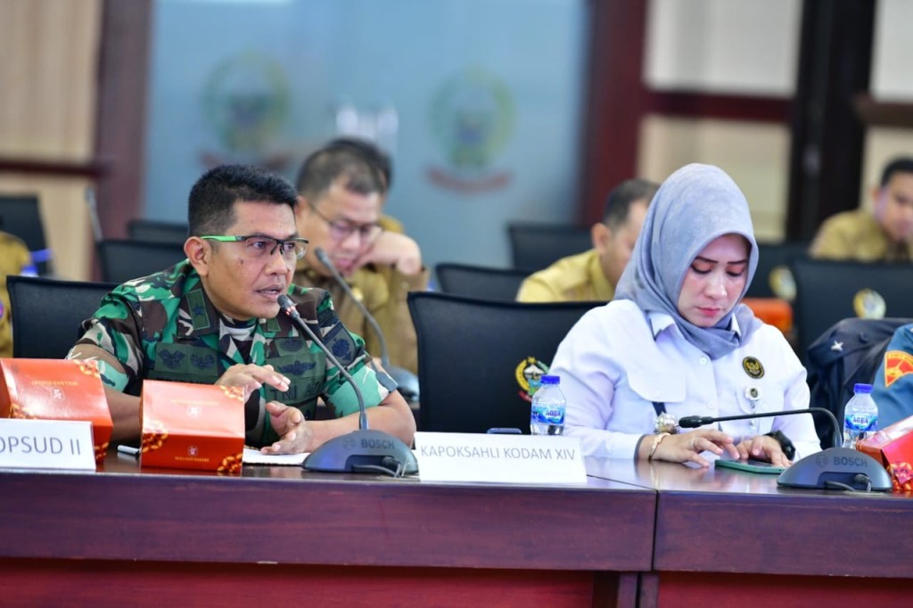 News Lintas Sulawesi/Makassar ; Kepala Kelompok Staf Ahli (Kapoksahli) Pangdam Brigjen TNI Tri Saktiyono mewakili Pangdam XIV/Hasanuddin menghadiri Rapat Koordinasi Pemantauan Pemilu 2024, bertempat di Toraja Room Gedung A Lantai 1 Kantor Gubernur Sulsel, Jl. Urip Sumoharjo, Kota Makassar. Selasa, (13/02/2024).