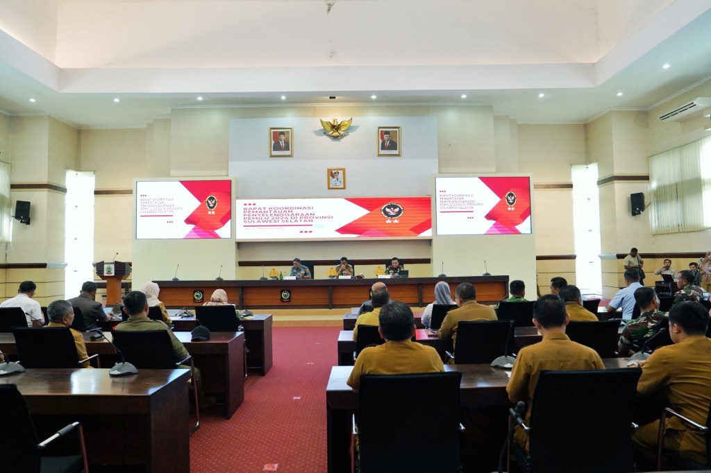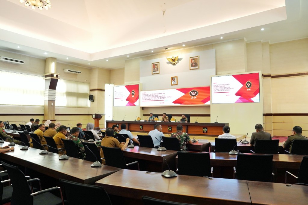 Rapat Koordinasi Pemantauan Pemilu 2024 ini dipimpin oleh Pj. Gubernur Sulsel Dr. Bahtiar Baharuddin, M.Si., dihadiri oleh unsur Forkopimda Sulsel, penyelenggara Pemilu dan pihak terkait guna memastikan kesiapan serta kelancaran proses pemungutan suara di wilayah Sulsel berjalan lancar, aman dan damai.