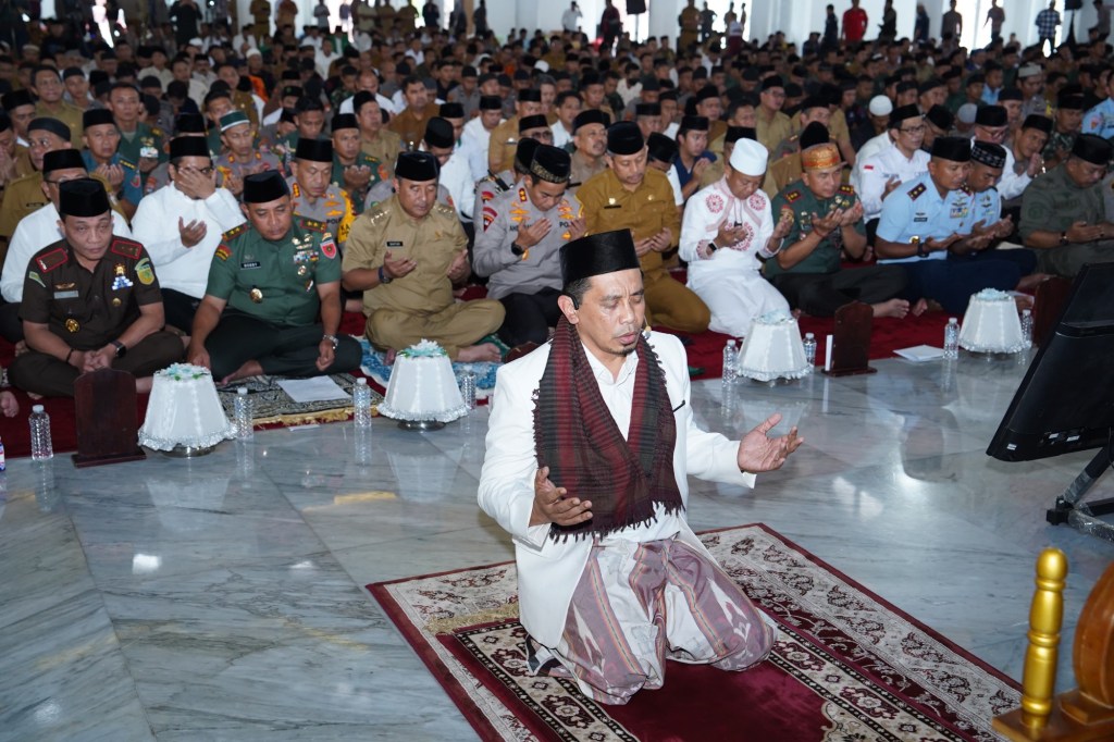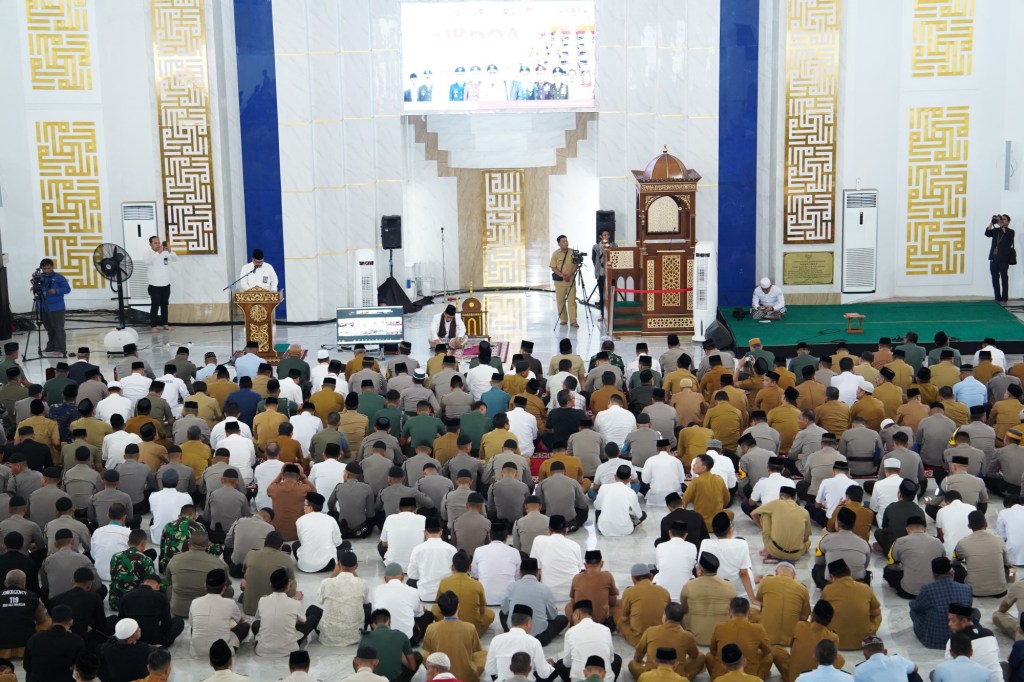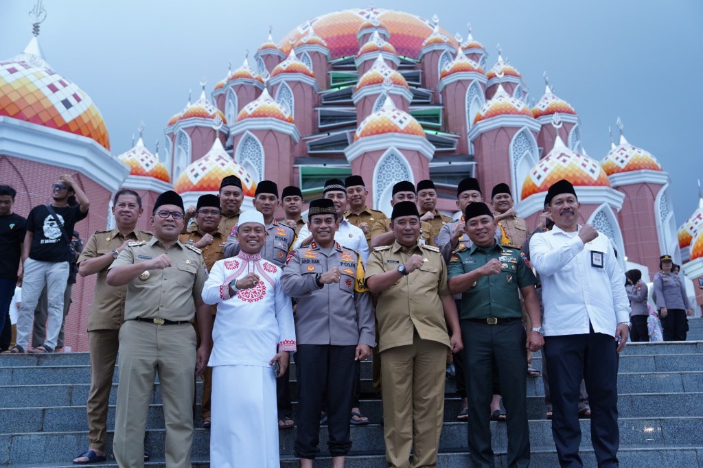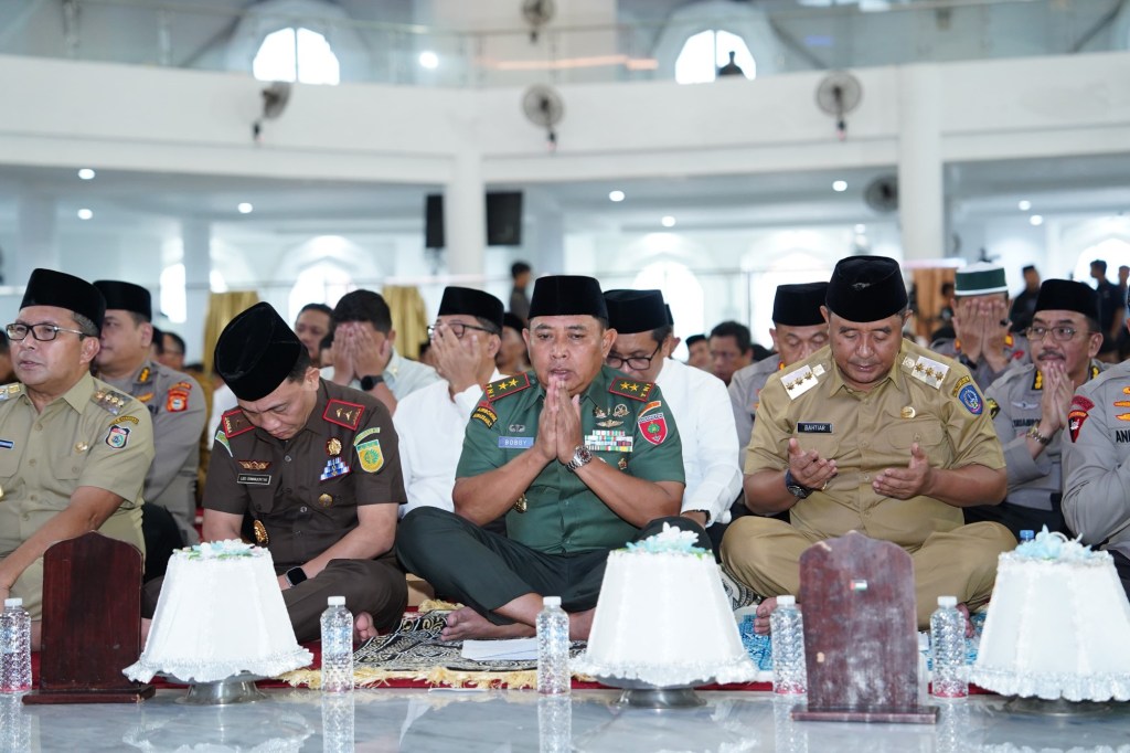 News Lintas Sulawesi/Makassar; Dalam semangat memperkuat persatuan dan kesatuan menuju Pemilihan Umum (Pemilu) 2024 yang lancar, aman dan damai, Pangdam XIV/Hasanuddin Mayjen TNI Bobby Rinal Makmun, S.I.P., didampingi sejumlah Pejabat Utama (PJU) Kodam, mengikuti Zikir dan Doa Kebangsaan Untuk Pemilu Damai 2024, bertempat di Masjid 99 Kubah Asmaul Husna Kawasan CPI Makassar, Jl. H. Bau, Kota Makassar. Senin, (12/02/2024).