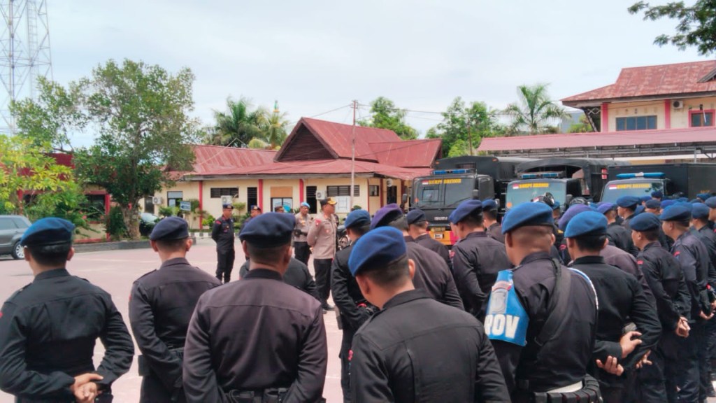 News Lintas Sulawesi/Poso: Dalam rangka pengamanan Pemilihan Umum (Pemilu) Tahun 2024, Satuan Setingkat Kompi (SSK) Satbrimob Batalyon B Pelopor tiba di Markas Kepolisian Resor (Mako Polres) Poso. Acara penerimaan tersebut dipimpin langsung oleh Kapolres Poso, AKBP Arthur Sameaputty, S.I.K, didampingi oleh Danyon B Pelopor Satbrimob, Kompol Robi Utomo, SH, dan Kabag Ops AKP Sudji Hartono, S.H. Selasa(14/02/2024)