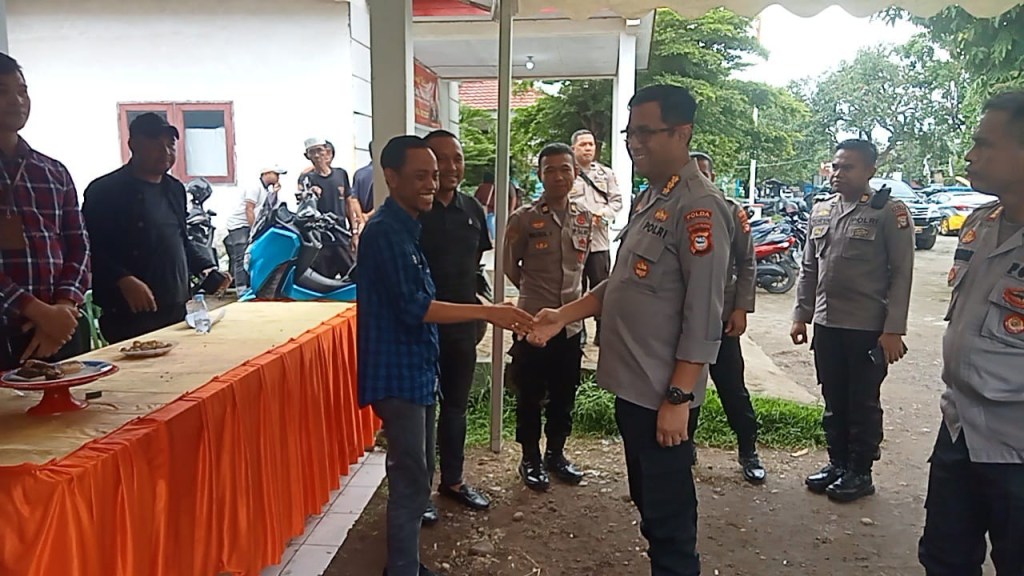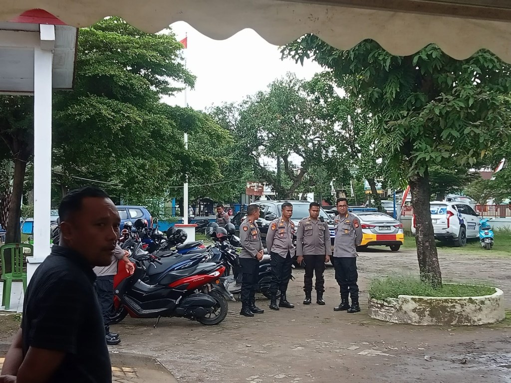 Kedatangan Kombes Pol Wahyu Marsudi l,S.Si.,M.Si Kabid Labfor Polda Sulsel didampingi kapolsek Galesong utara Iptu Hatta camat galesong utara Sumarlin.S.Pd. untuk memastikan proses perhitungan suara di kantor camat galesong utara aman, lancar dan kondusif.