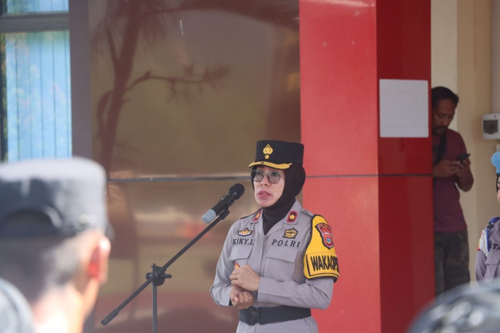 News Lintas Sulawesi/Sigi; Wakapolres Sigi Kompol Kiky Khristina, S.Sos.,M.H. memimpin apel pelepasan personel Pengamanan Pemungutan Suara Pemilu 2024 BKO Polda Sulteng di Polres Sigi untuk kembali ke kesatuan asalnya, Minggu (18/02) pukul 09.00 Wita.