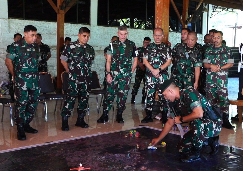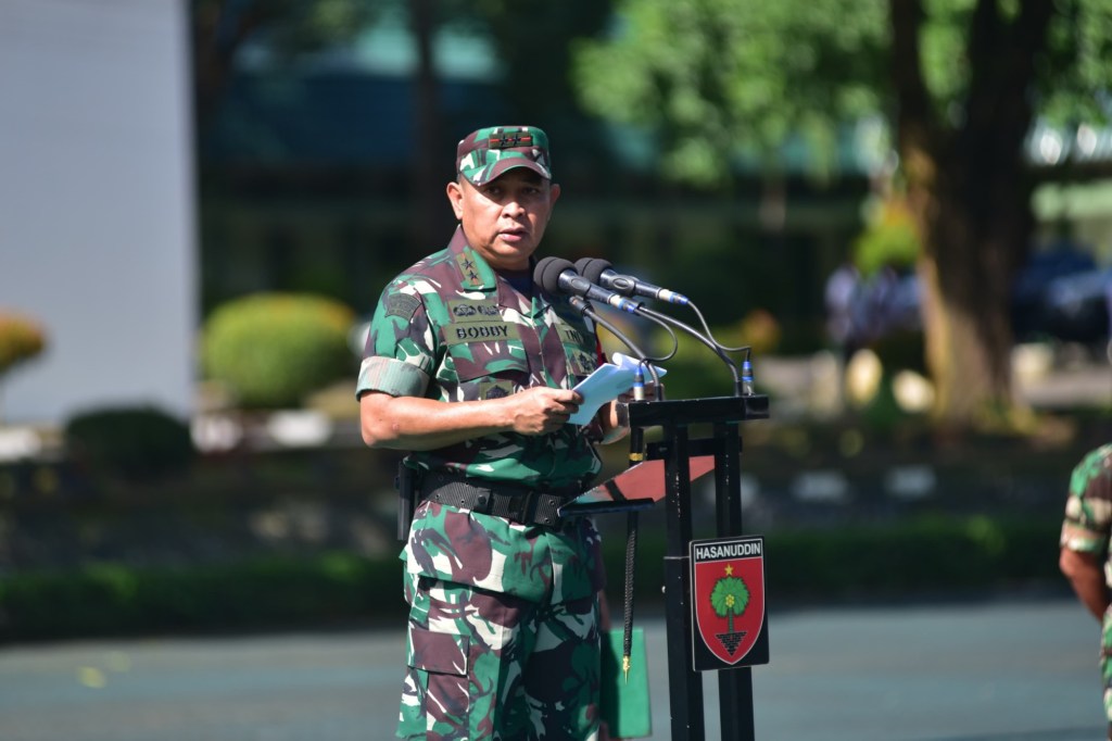 News Lintas Sulawesi/Makassar; Selaku Panglima Komando Tugas Gabungan Terpadu (Pangkogasgabpad), Pangdam XIV/Hasanuddin Mayjen TNI Bobby Rinal Makmun, S.I.P., memimpin Tactical Floor Game (TFG) yang dilaksanakan oleh Komandan Satuan Tugas (Dansatgas) Pengamanan Wilayah dalam rangka Kunjungan Kerja (Kunker) Presiden RI Ir. Joko Widodo, bertempat di Baruga Lapangan Golf Makodam, Jl. Urip Sumoharjo Kota Makassar. Selasa, (20/02/2024).