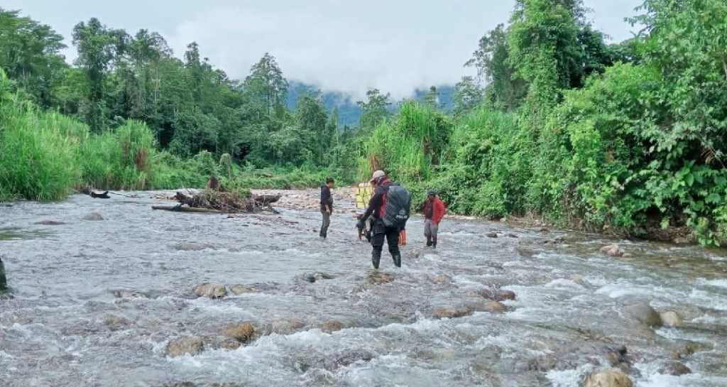 “Namun, tak membuat para petugas itu pesimis, justru mereka saat menyeberangi sugai itu, meski melawan air sungai yang meluap dan deras, tim kami penuh dengan optimisme menyatu dengan alam yang cukup ekstrim itu, memang agak sedikit terkendala namun, walhasil samapai juga di Dusun TPS yang masih terusolir itu, “bebernya.