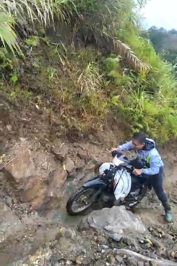 “Meski jalur yang dilalui medannya cukup ekstrim dan licin, berlumpur, berbatu dan juga curam, bahkan jurangnya juga sangat dalam, apa lagi di kawasan itu, juga terdapat sungai yang arusnya sangat deras dengan debit air kian bertambah naik dan meluap akibat intensitas hujan amat tinggi