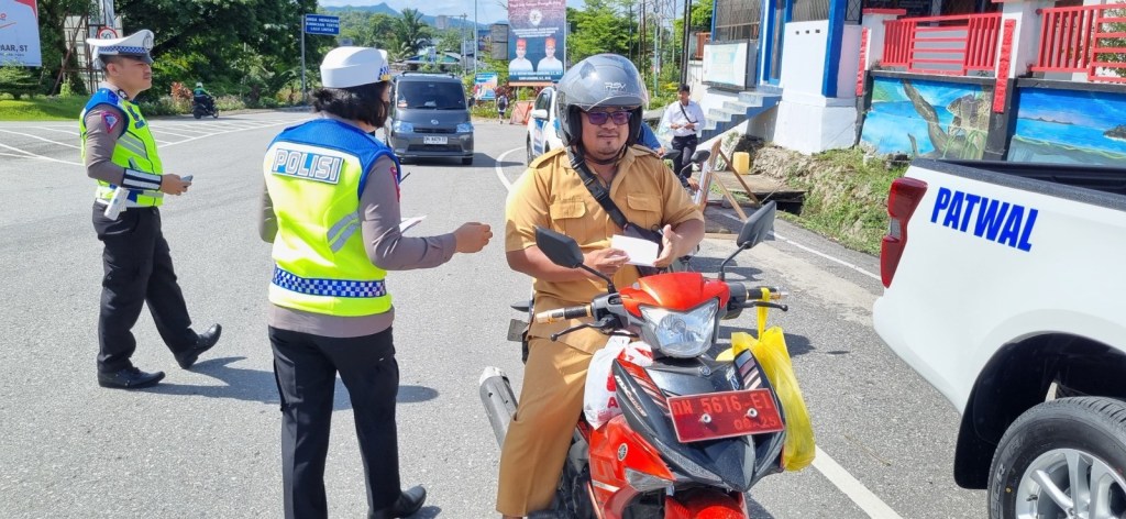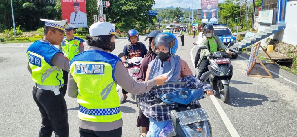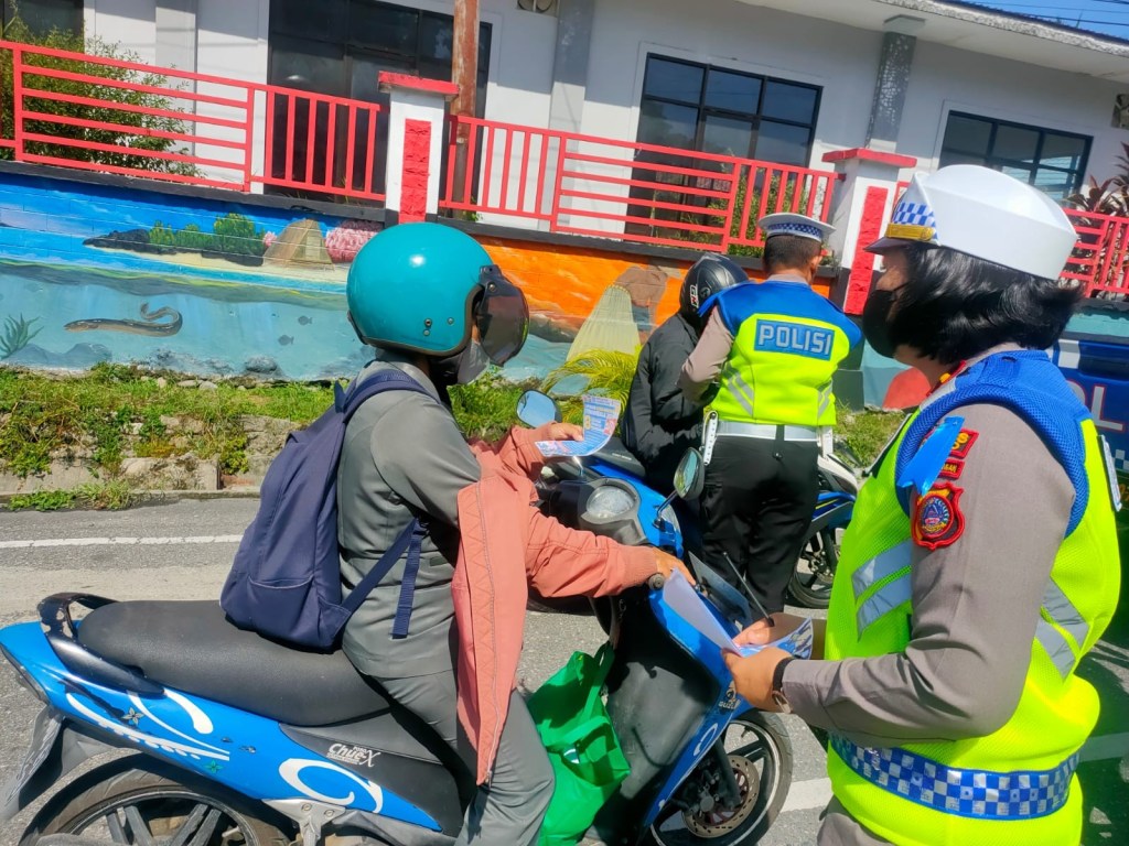 Dalam kegiatan sosialisasi tersebut, petugas Ops Keselamatan Tinombala 2024 yang dipimpin oleh KBO Lantas Iptu Rivan Sutrisno Turuka, S.H. bersama Kanit Kamsel Ipda Elfrid Ilka Juniel Raupa, S.H. dan personel Sat Lantas Polres Poso menyampaikan informasi penting tentang tertib berlalu lintas kepada pengendara roda 2 dan roda 4.