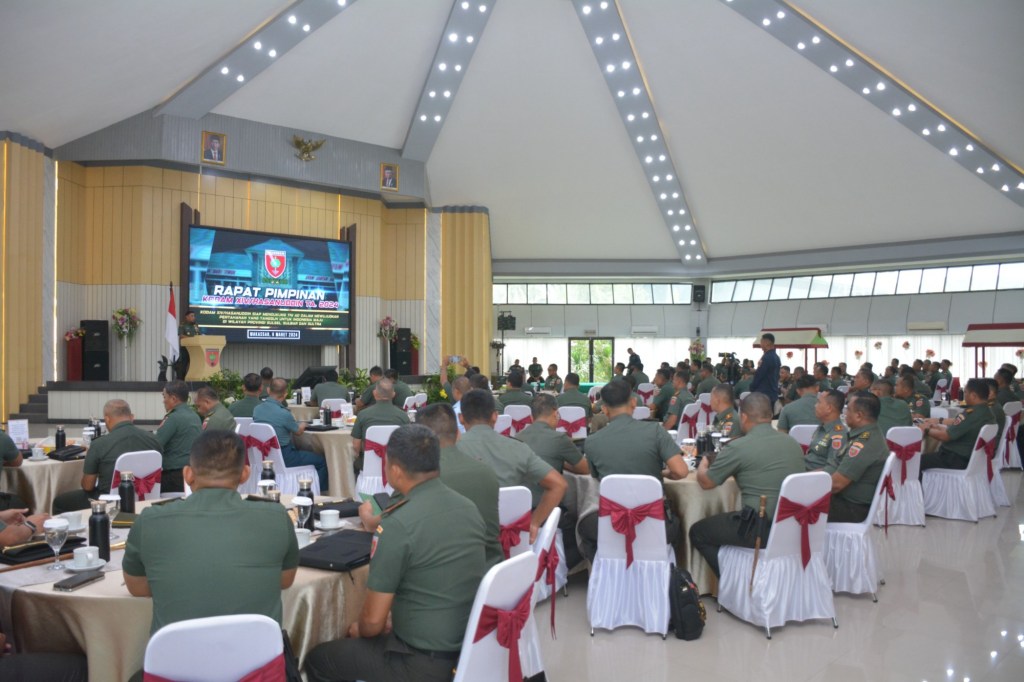 News Lintas Sulawesi/Makassar; Pangdam XIV/Hasanuddin Mayjen TNI Bobby Rinal Makmun, S.I.P., memimpin Rapat Pimpinan (Rapim) Kodam XIV/Hasanuddin TA 2024, bertempat di Balai Pertemuan Hasanuddin (BPH) Makodam, Jl. Urip Sumoharjo, Kota Makassar. Rabu, (6/03/2024).