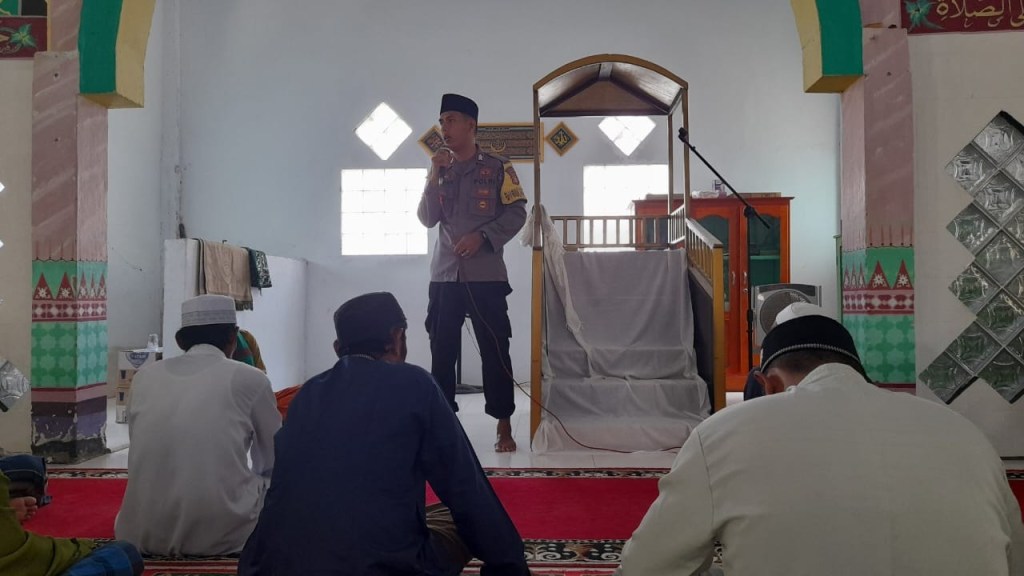 Setelah selesai melaksanakan Sholat Jumat, Bripka Jabbar Abu melaksanakan menyempatkan waktu untuk menyampaikan himbauan dan pesan Kamtibmas kepada jamaah yang hadir. Dalam sambutannya, ia mengajak semua untuk saling menghormati dan menjaga keamanan demi terciptanya situasi Kamtibmas yang aman dan kondusif.
