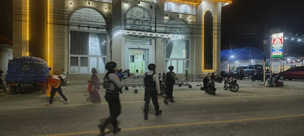 Dalam upaya memberikan keamanan dan kenyamanan bagi umat muslim yang melaksanakan ibadah sholat tarawih selama bulan suci Ramadhan 1445 Hijriah, personil Satuan Tugas (Satgas) Preventif OMB 2024 turut serta melakukan patroli dan pengamanan di sejumlah masjid di Kota Poso, Selasa (19/03/24) malam.