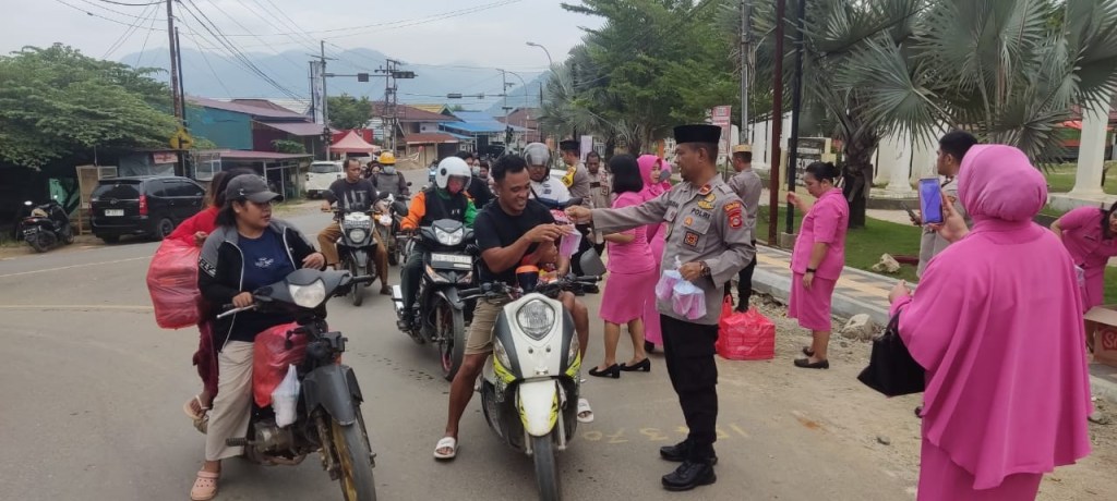 Dalam rangka berbagi kebahagiaan di bulan suci Ramadhan, Polsek Petasia bersama Bhayangkari Ranting Petasia mengadakan kegiatan pembagian takjil gratis kepada masyarakat, Selasa (19/3/2024).