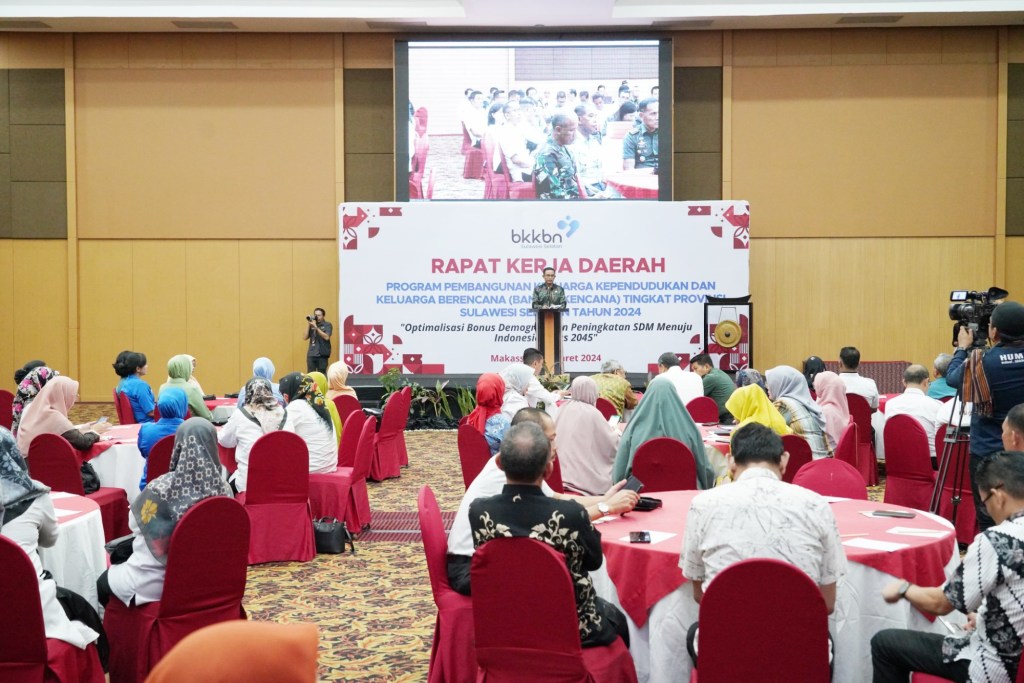 News Lintas Sulawesi/Makassar; Kapoksahli Pangdam XIV/Hasanuddin Brigjen TNI Tri Saktiyono, mewakili Pangdam, menghadiri acara Rapat Kerja Daerah (Rakerda) Badan Kependudukan dan Keluarga Berencana Nasional (BKKBN) tingkat Provinsi Sulawesi Selatan tahun 2024, bertempat di Hotel Swiss Belinn, Jl. Boulevard, Kota Makassar. Rabu, (27/03/2024).