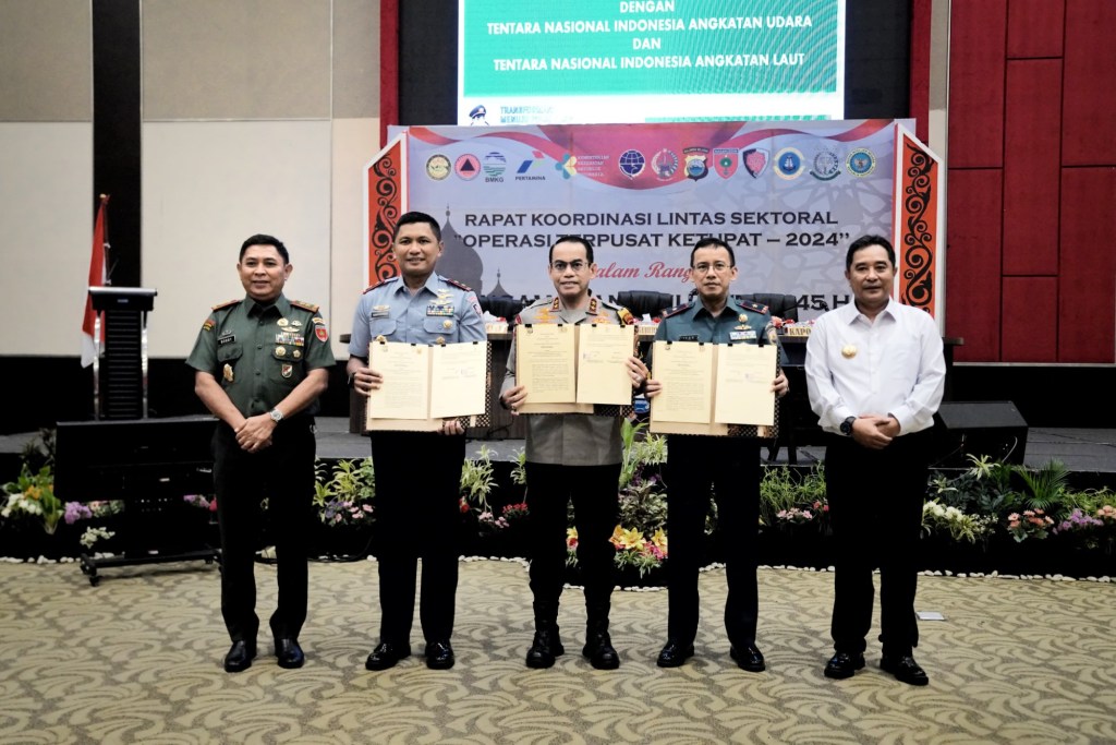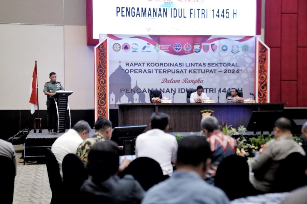 News Lintas Sulawesi/Makassar; Pangdam XIV/Hasanuddin Mayjen TNI Bobby Rinal Makmun, S.I.P., menghadiri Rapat Koordinasi Lintas Sektoral Operasi Terpusat Ketupat 2024, dalam rangka Pengamanan Hari Raya Idul Fitri 1445 Hijriah Tahun 2024, bertempat di Hotel Dalton, Jl. Perintis Kemerdekaan, Kota Makassar. Kamis,(28/03/2024).
